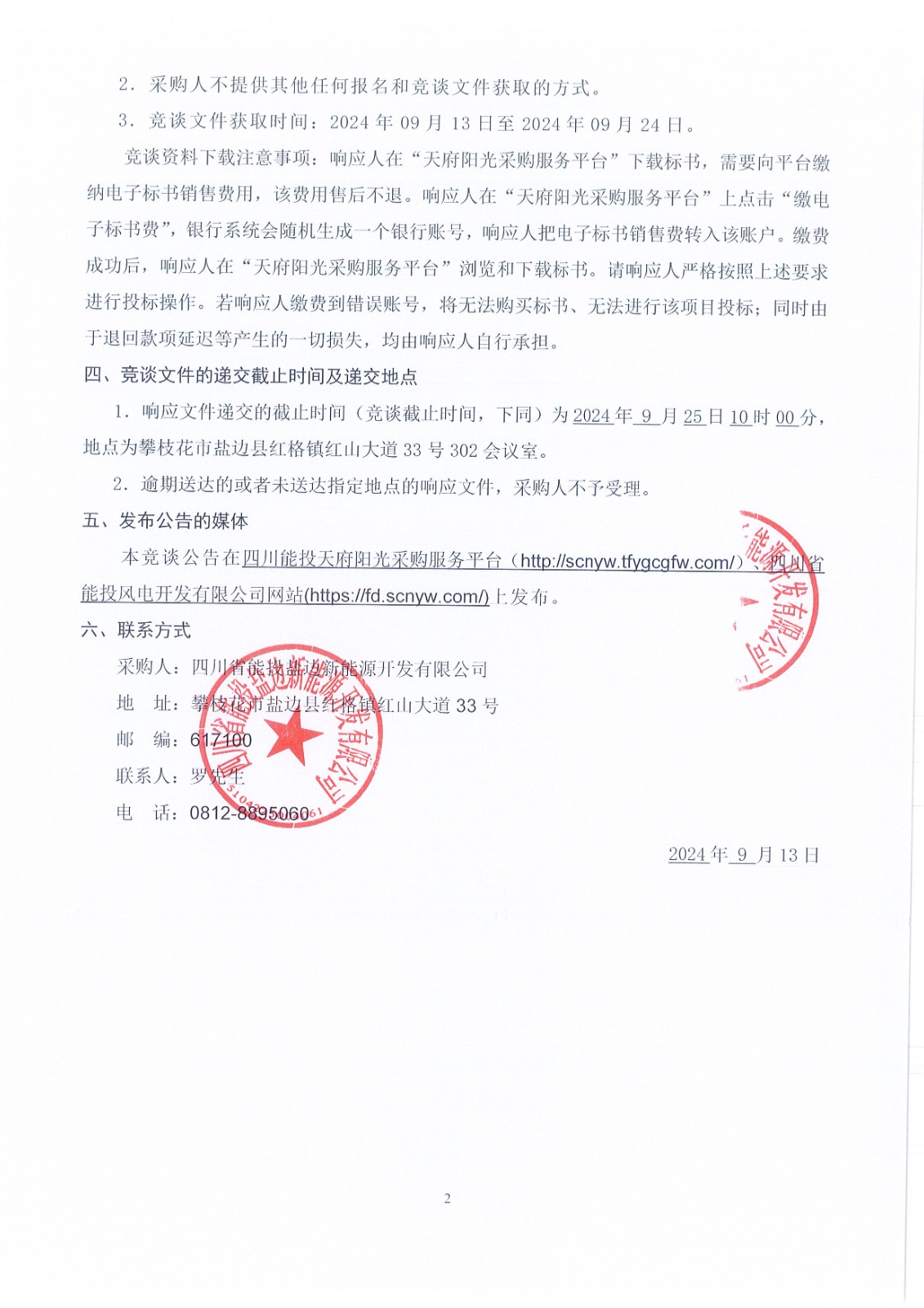 采购人:四川省能投盐边新能源开发有限公司