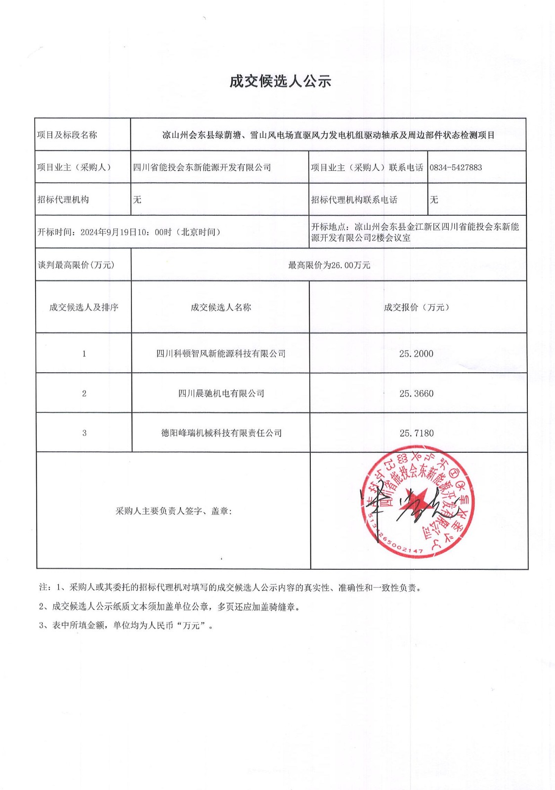 上一条:四川省能投会东新能源开发有限公司关于拉马、鲁南风电场风力发电机组在线振动后台监测系统数据分析及维护项目的成交候选人公示