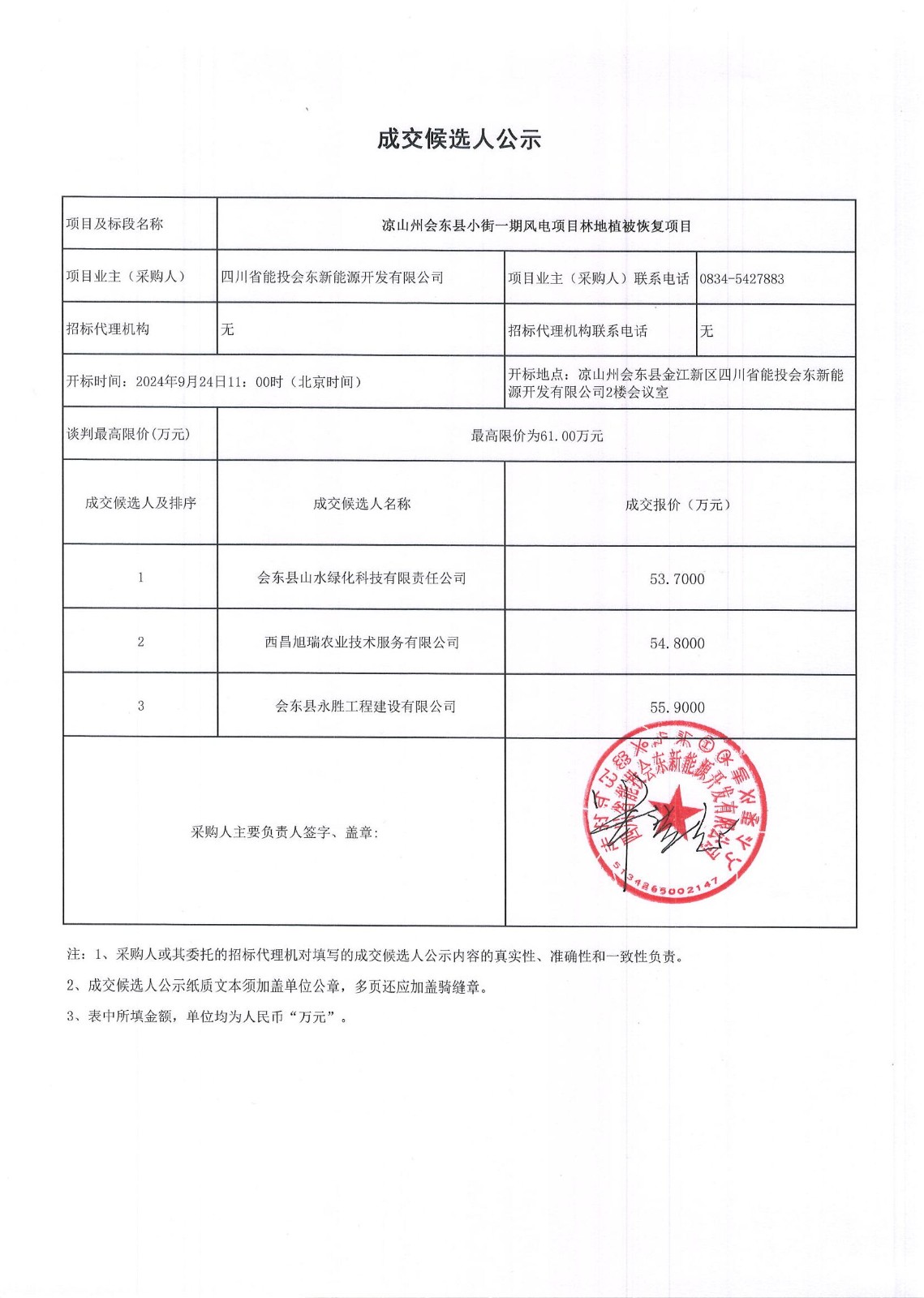 下一条:四川省能投会东新能源开发有限公司关于凉山州会东县淌塘二期风电项目林地植被恢复项目的成交候选人公示