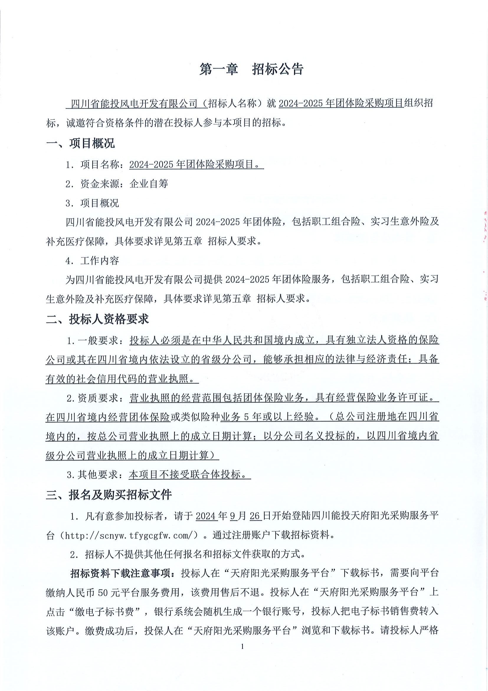 1.凡有意参加投标者,请于2024年9月26日开始登陆四川能投天府阳光采购服务平台(http://scnyw.tfygcgfw.com/)。通过注册账户下载招标资料。