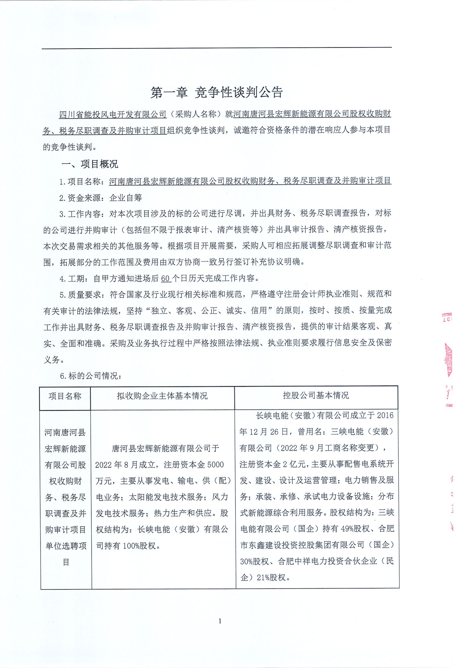 河南唐河县宏辉新能源有限公司股权收购财务、税务尽职调查及并购审计项目单位选聘项目 |