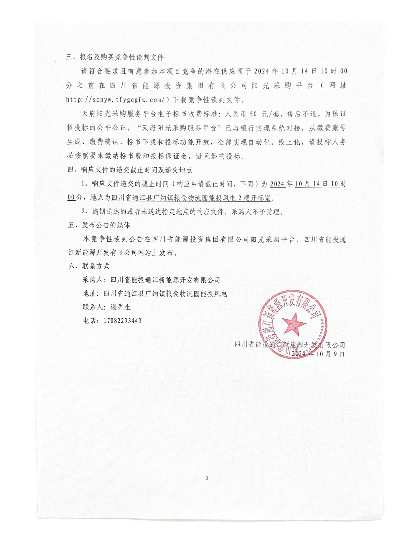 本竞争性谈判公告在四川省能源投资集团有限公司阳光采购平台、四川省能投通江新能源开发有限公司网站上发布。