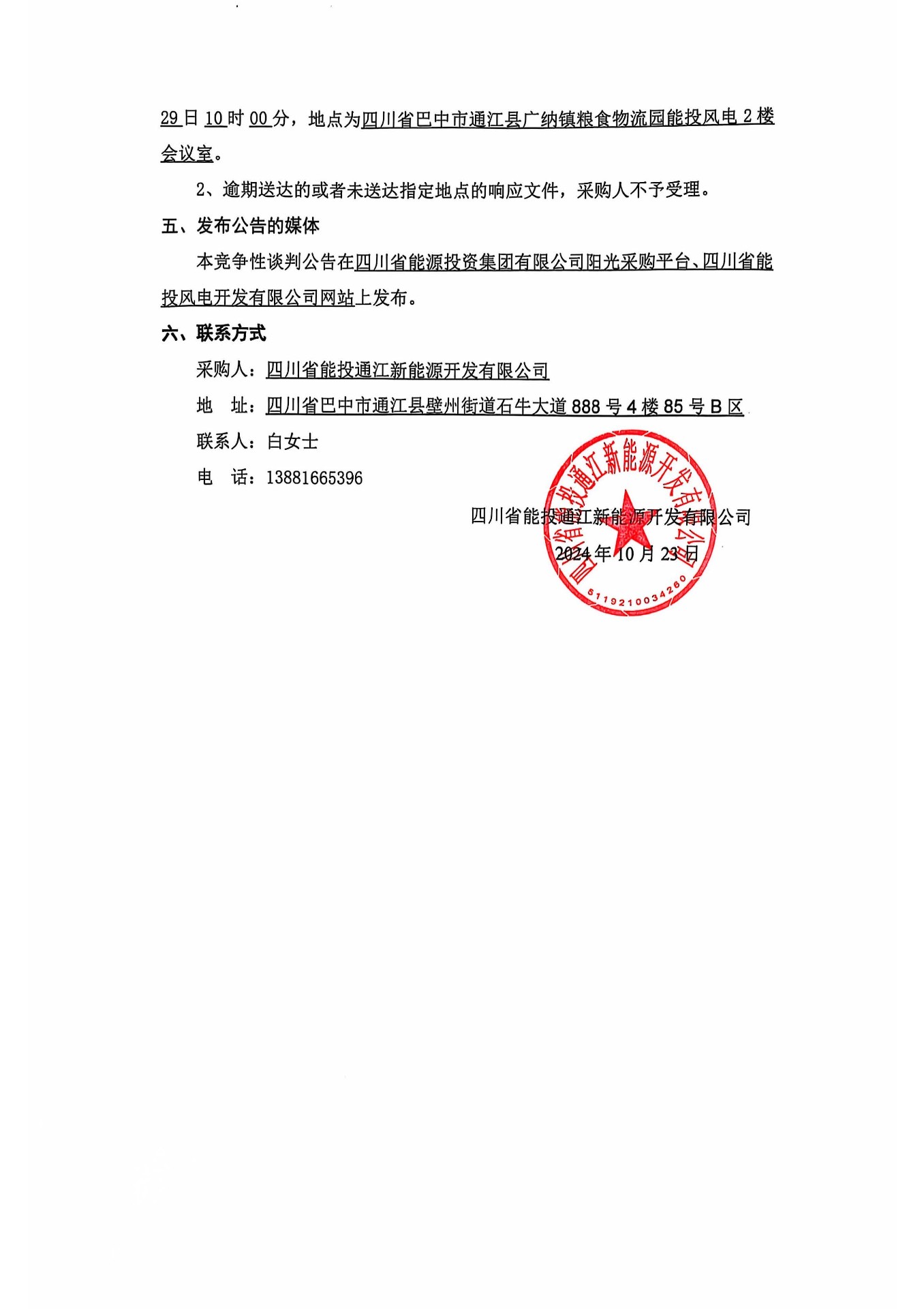 1、响应文件递交的截止时间(响应申请截止时间,下同)为2024年10月29日10时00分,地点为四川省巴中市通江县广纳镇粮食物流园能投风电2楼会议室。