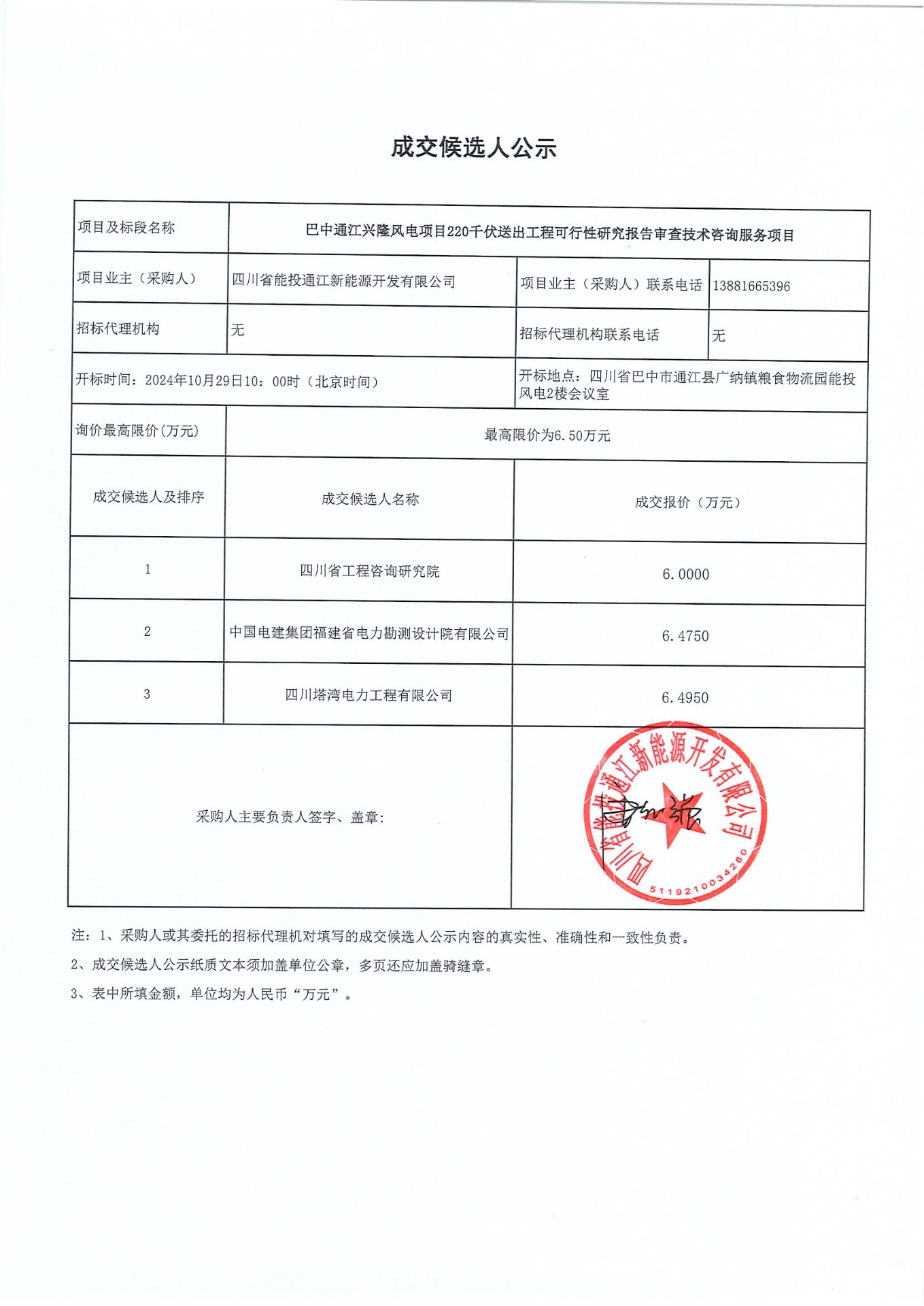 上一条:四川省能投通江新能源开发有限公司关于巴中通江兴隆风电项目220千伏送出工程环境影响评价报告编制项目的竞争性谈判公告