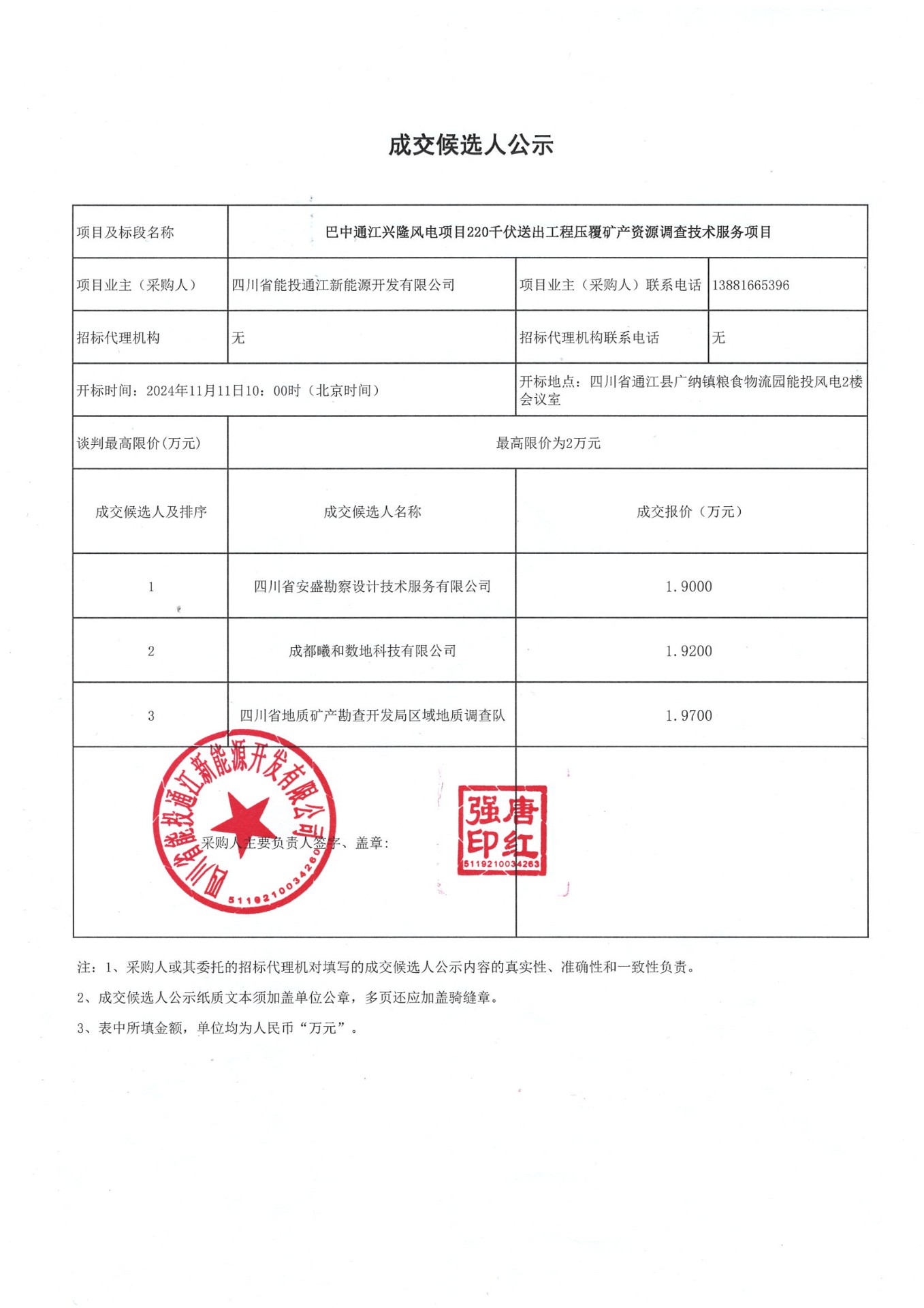 下一条:四川省能投通江新能源开发有限公司关于巴中通江兴隆风电项目220千伏送出工程拟使用林地调查暨报告编制技术服务项目的成交候选人公示