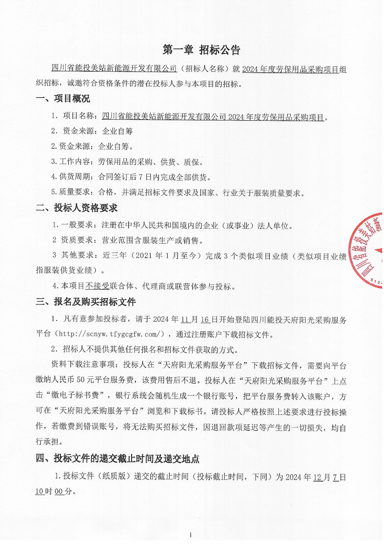 四川省能投美姑新能源开发有限公司(招标人名称)就2024年度劳保用品采购项目组织招标,诚邀符合资格条件的潜在投标人参与本项目的招标。