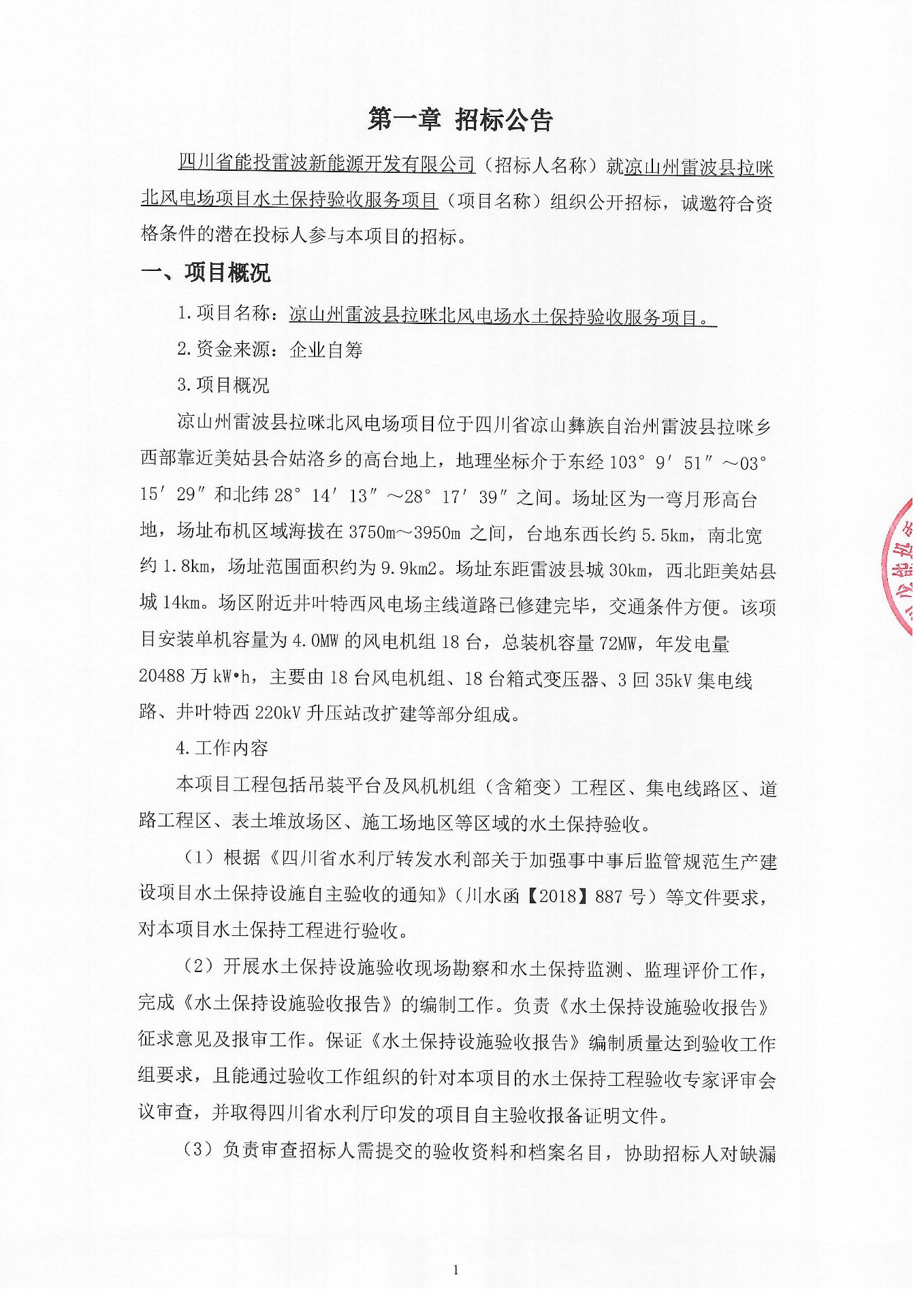 1.项目名称:凉山州雷波县拉咪北风电场水土保持验收服务项目。
