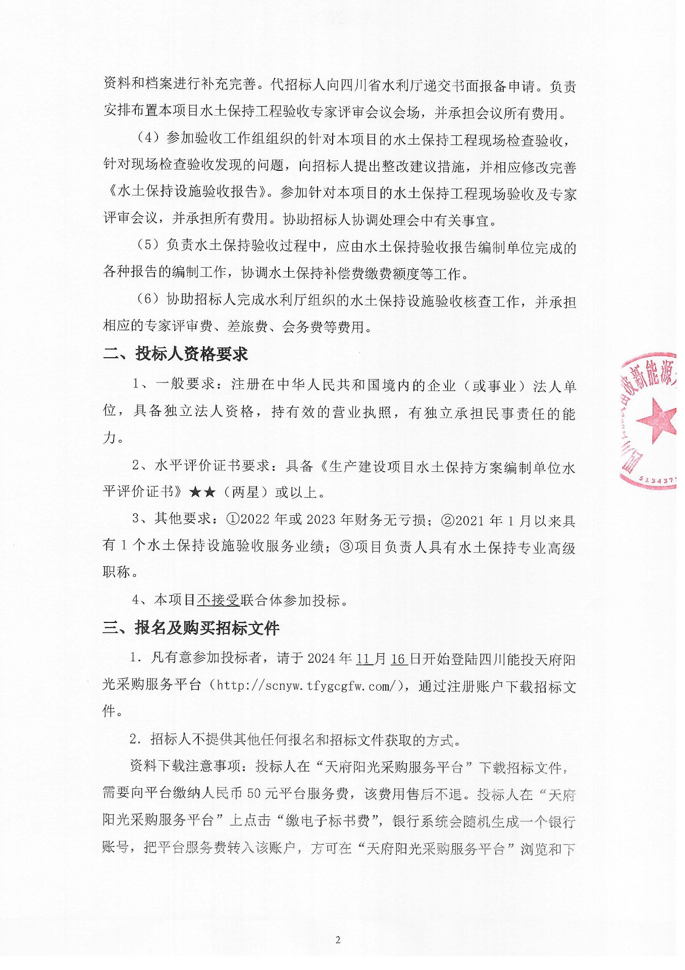 1.凡有意参加投标者,请于2024年11月16日开始登陆四川能投天府阳光采购服务平台(http://scnyw.tfygcgfw.com/),通过注册账户下载招标文件。
