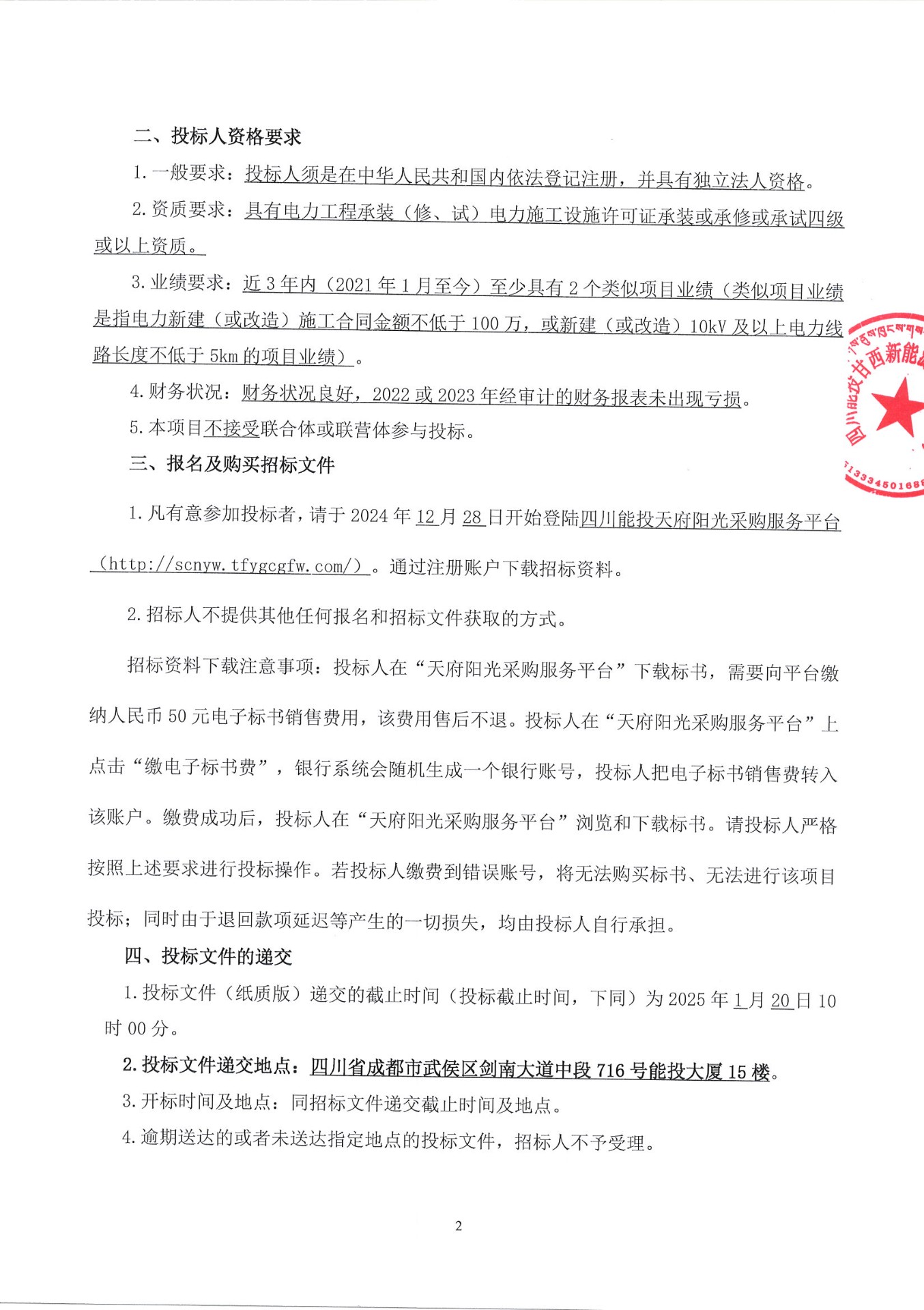 1.凡有意参加投标者,请于2024年12月28日开始登陆四川能投天府阳光采购服务平台(http://scnyw.tfygcgfw.com/)。通过注册账户下载招标资料。