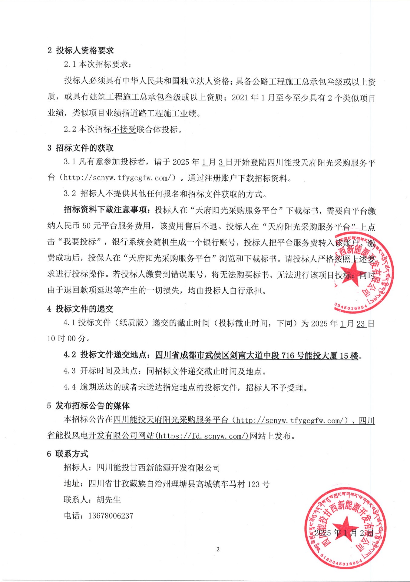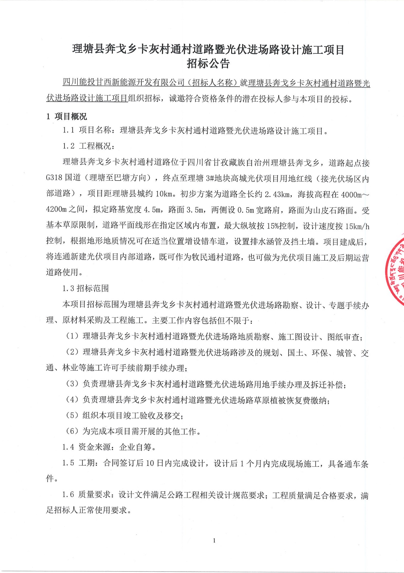 四川能投甘西新能源开发有限公司(招标人名称)就理塘县奔戈乡卡灰村通村道路暨光伏进场路设计施工项目组织招标,诚邀符合资格条件的潜在投标人参与本项目的投标。