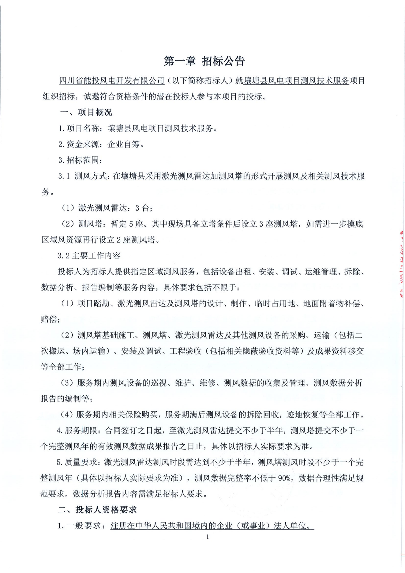 投标人为招标人提供指定区域测风服务,包括设备出租、安装、调试、运维管理、拆除、数据分析、报告编制等服务内容,具体要求包括不限于: