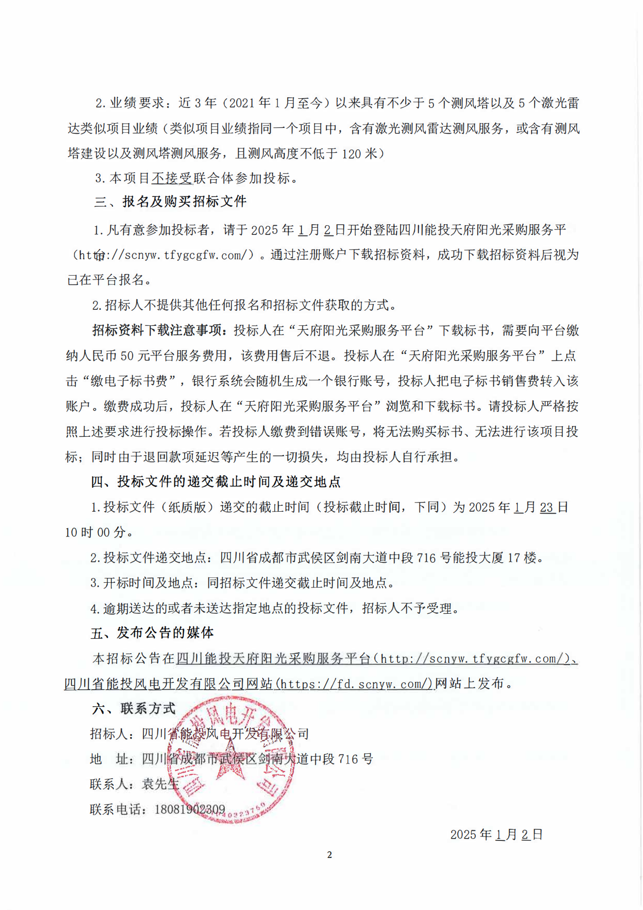 1.凡有意参加投标者,请于2025年1月2日开始登陆四川能投天府阳光采购服务平台(http://scnyw.tfygcgfw.com/)。通过注册账户下载招标资料,成功下载招标资料后视为已在平台报名。