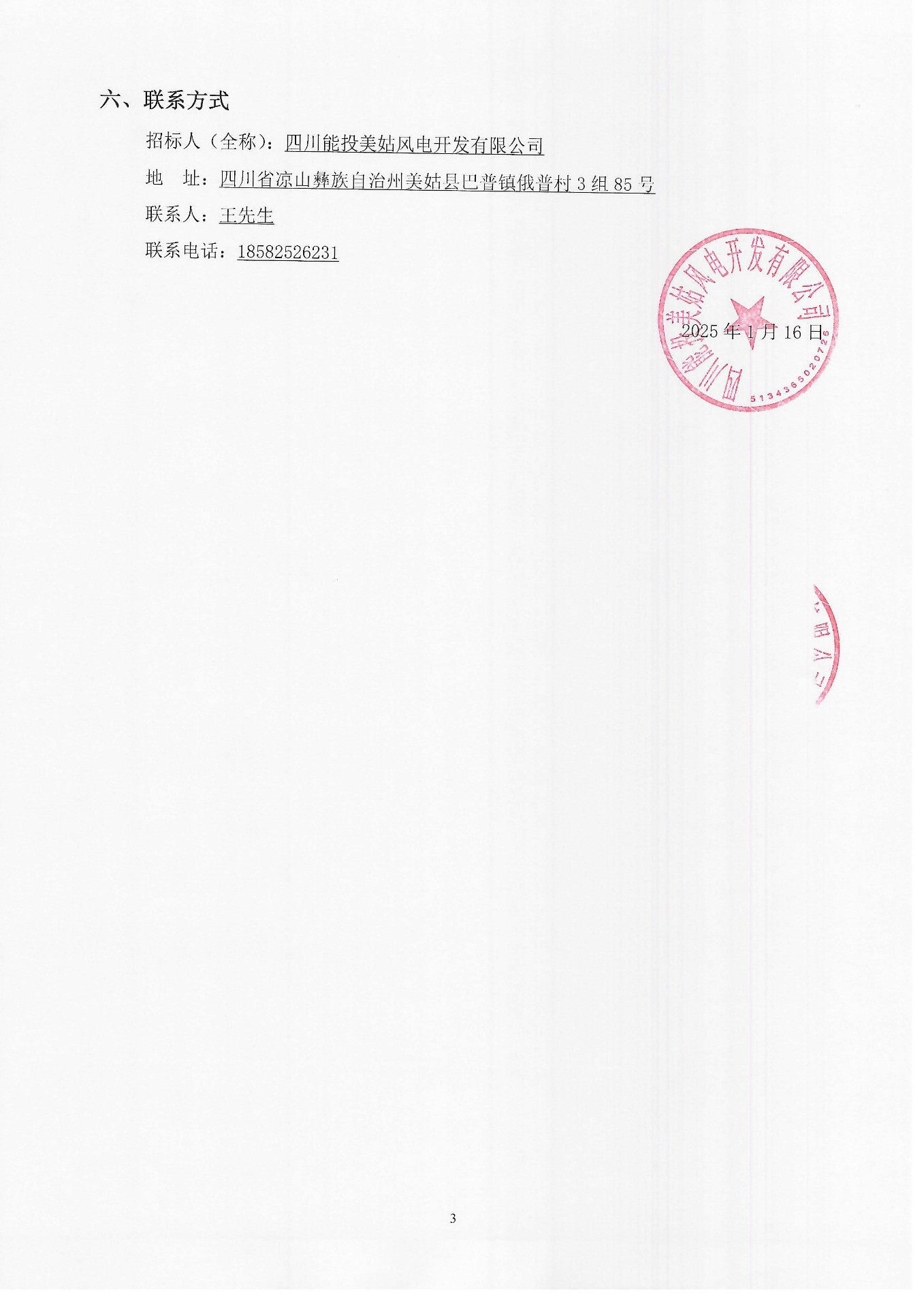 招标人(全称):四川能投美姑风电开发有限公司