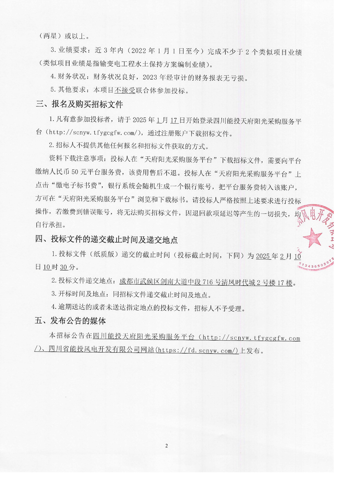1.凡有意参加投标者,请于2025年1月17日开始登录四川能投天府阳光采购服务平台(http://scnyw.tfygcgfw.com/),通过注册账户下载招标文件。