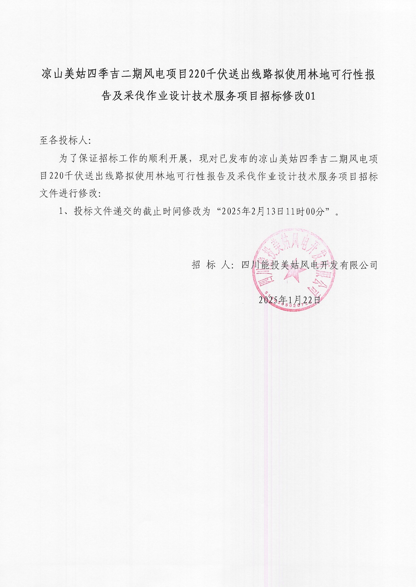 下一条:四川能投美姑风电开发有限公司关于凉山美姑四季吉二期风电项目220千伏送出线路项目招标代理机构选聘的成交候选人公示