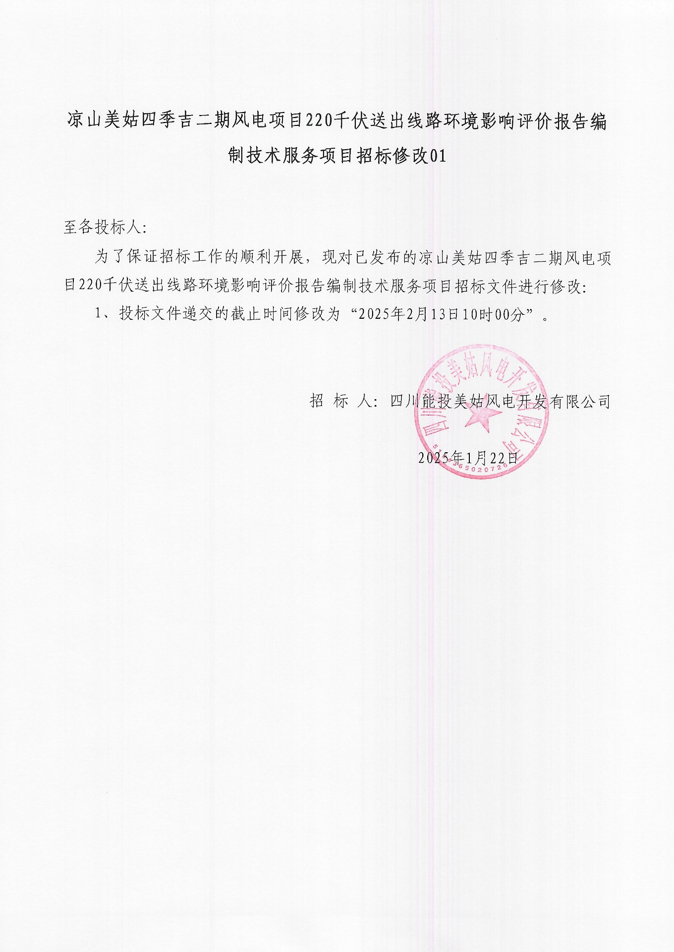 下一条:四川能投美姑风电开发有限公司关于凉山美姑四季吉二期风电项目220千伏送出线路水土保持方案编制技术服务项目招标修改公告