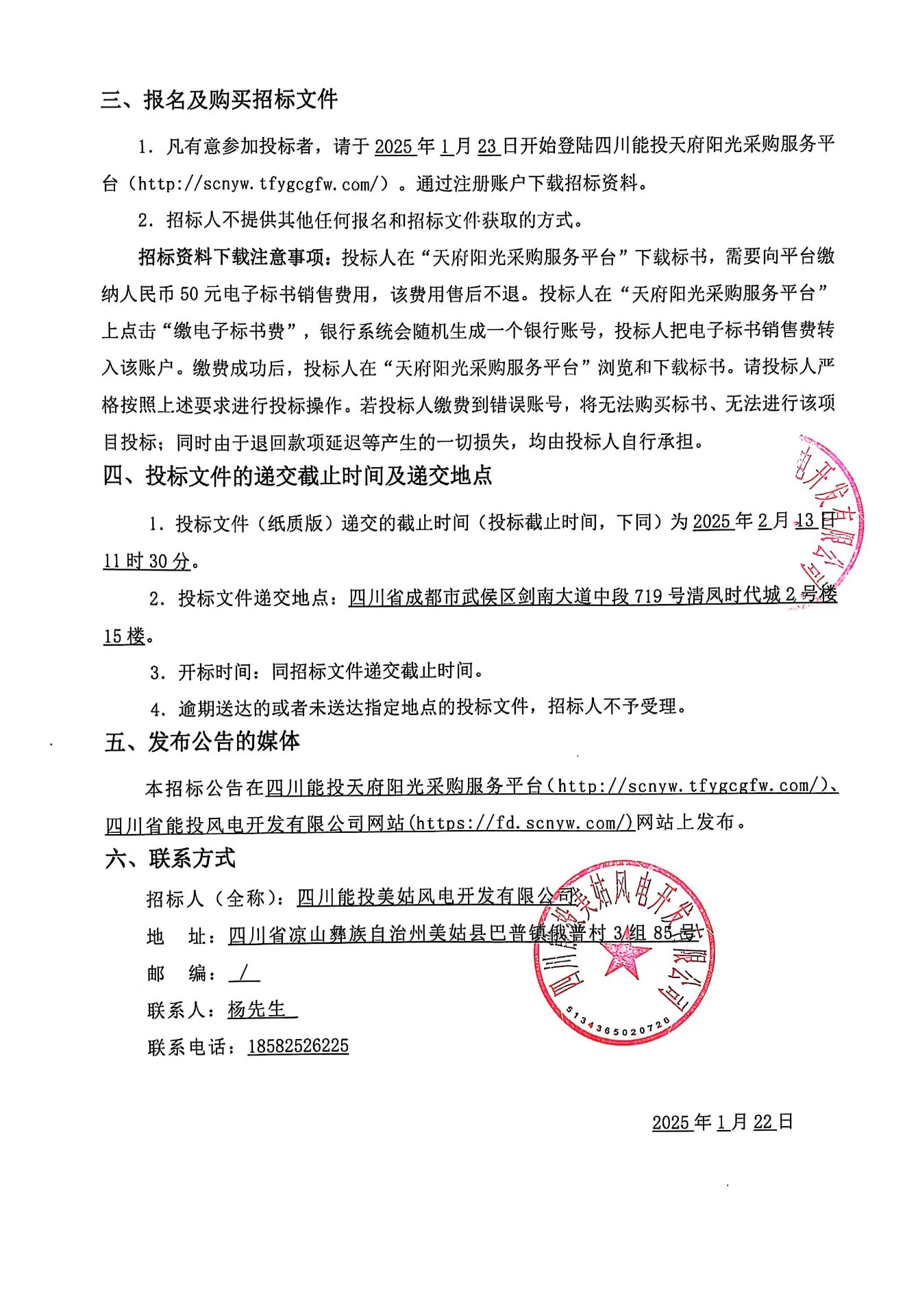 1.凡有意参加投标者,请于2025年1月23日开始登陆四川能投天府阳光采购服务平台(http://scnyw.tfygcgfw.com/)。通过注册账户下载招标资料。