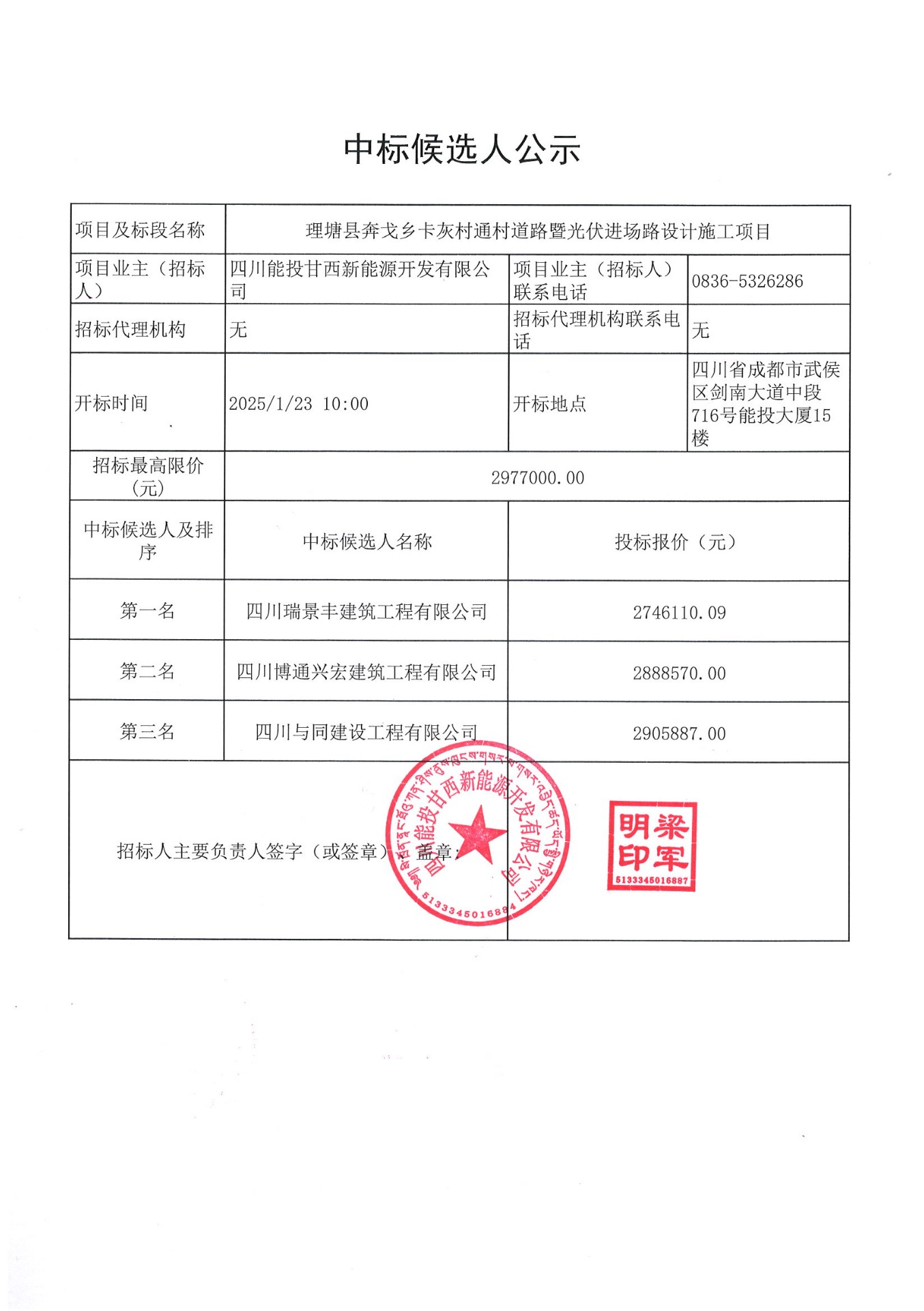 下一条:四川能投甘西新能源开发有限公司关于办公及生活物资采购项目的中标候选人公示