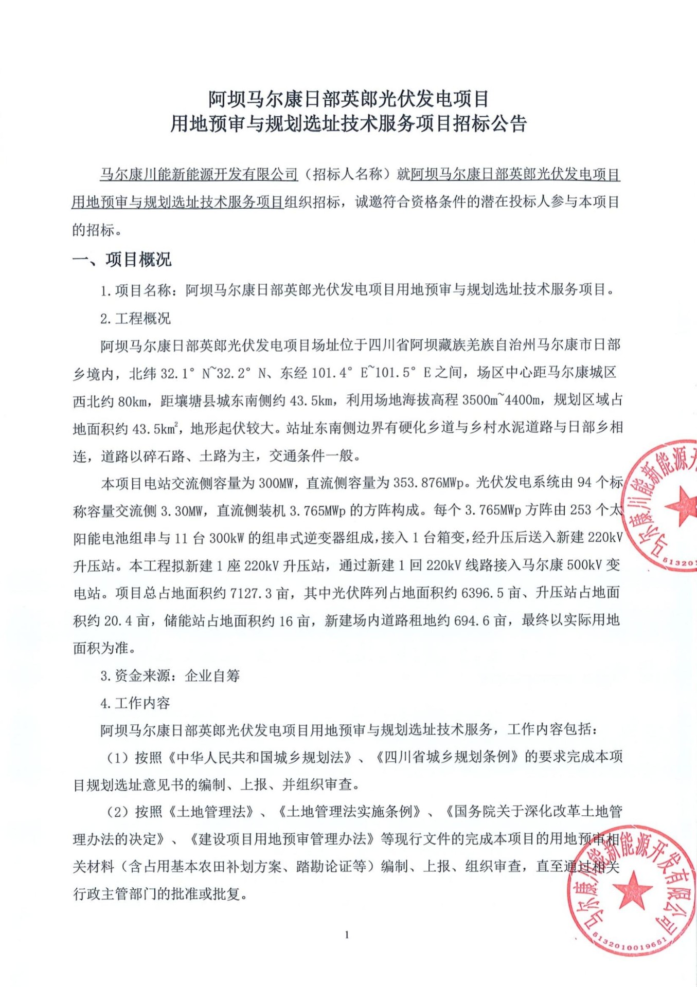 招标人(全称):马尔康川能新能源开发有限公司