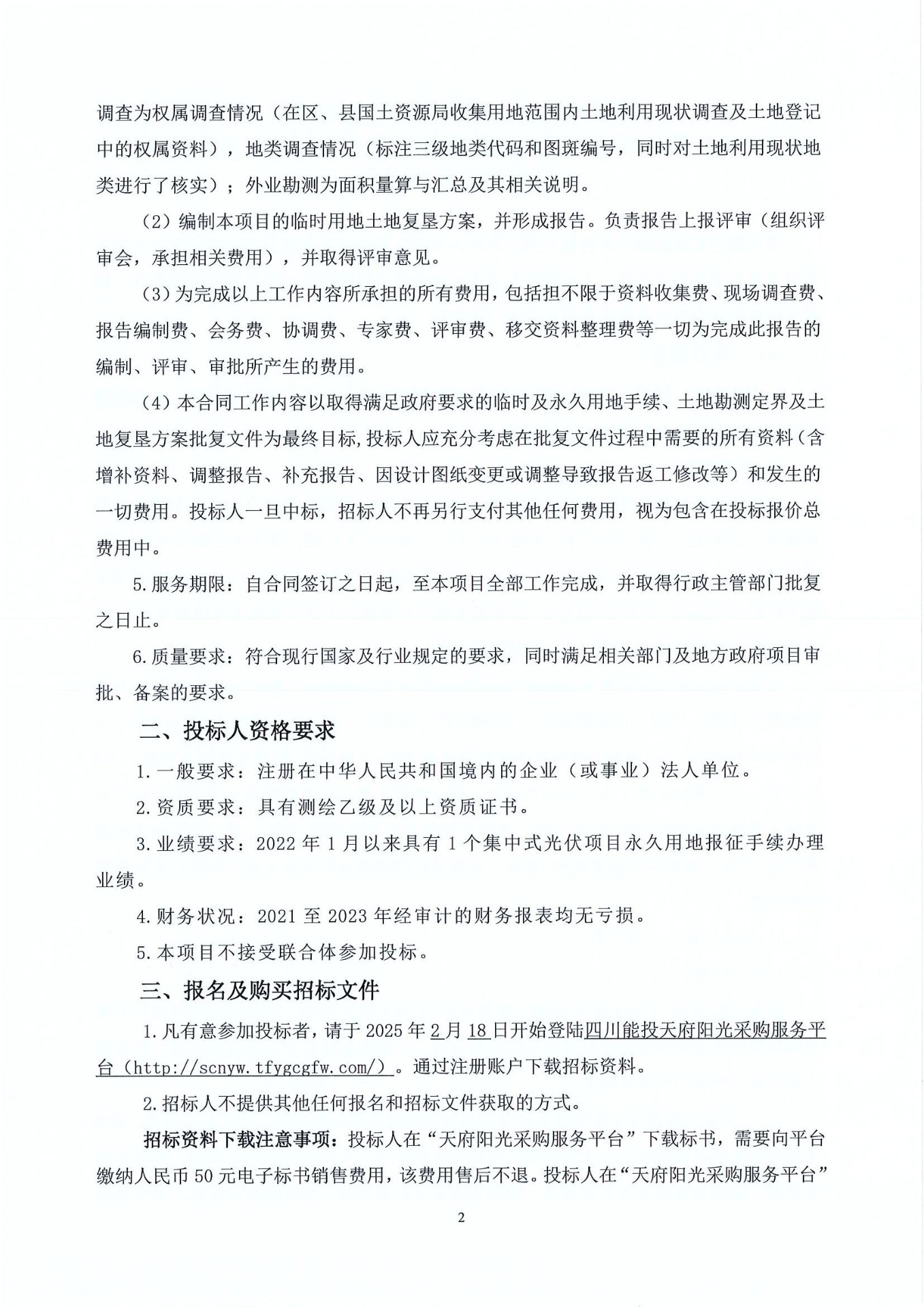 1.凡有意参加投标者,请于2025年2月18日开始登陆四川能投天府阳光采购服务平台(http://scnyw.tfygcgfw.com/)。通过注册账户下载招标资料。