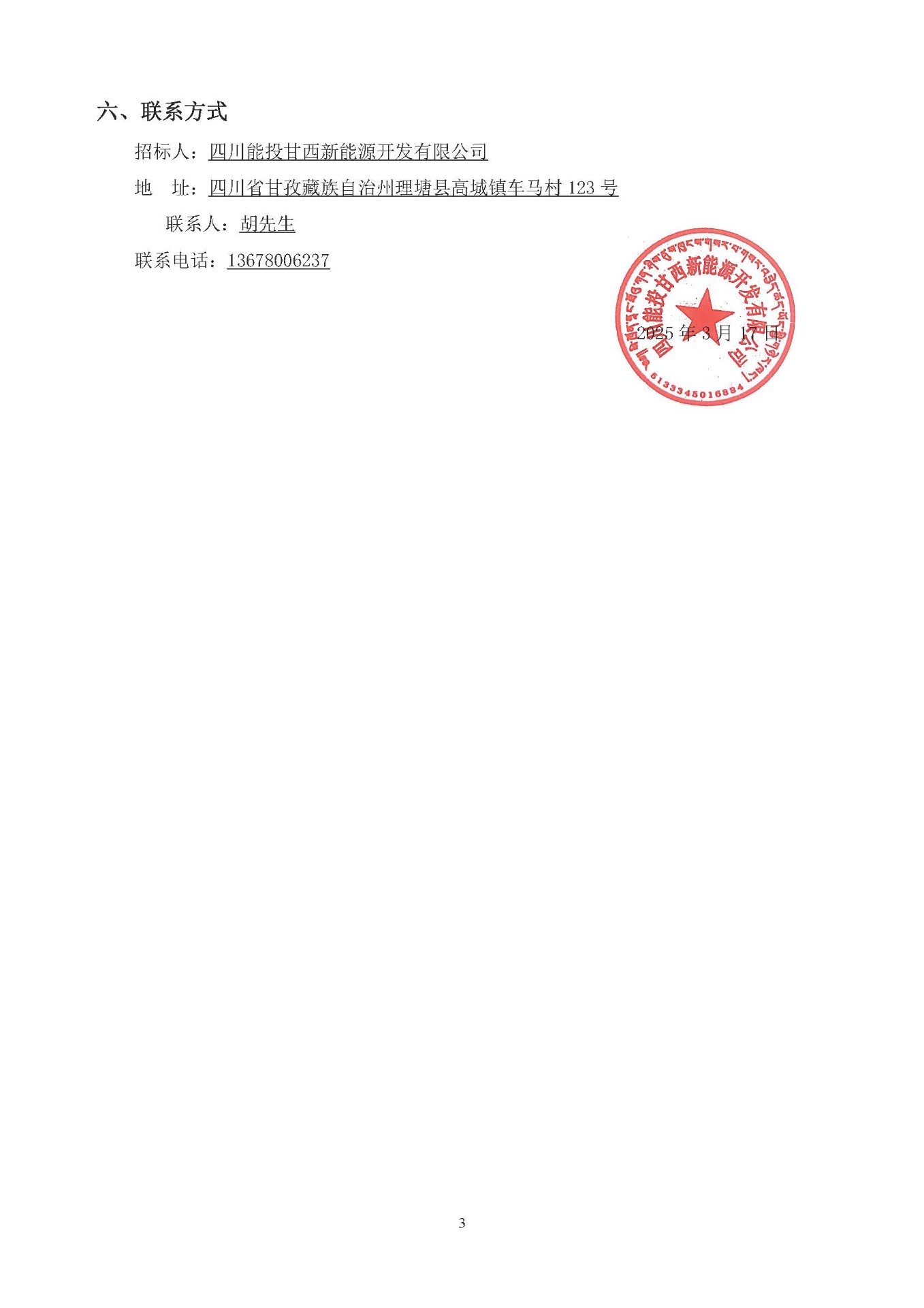 招标人:四川能投甘西新能源开发有限公司