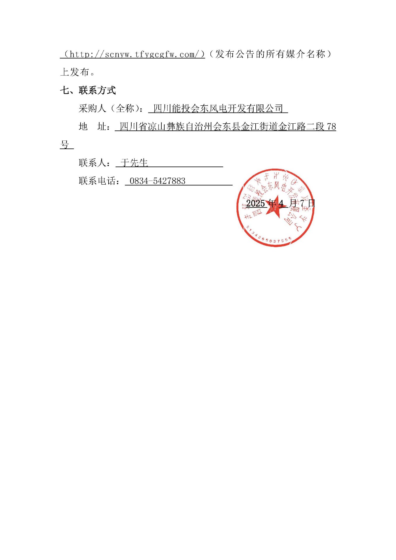 采购人(全称): 四川能投会东风电开发有限公司