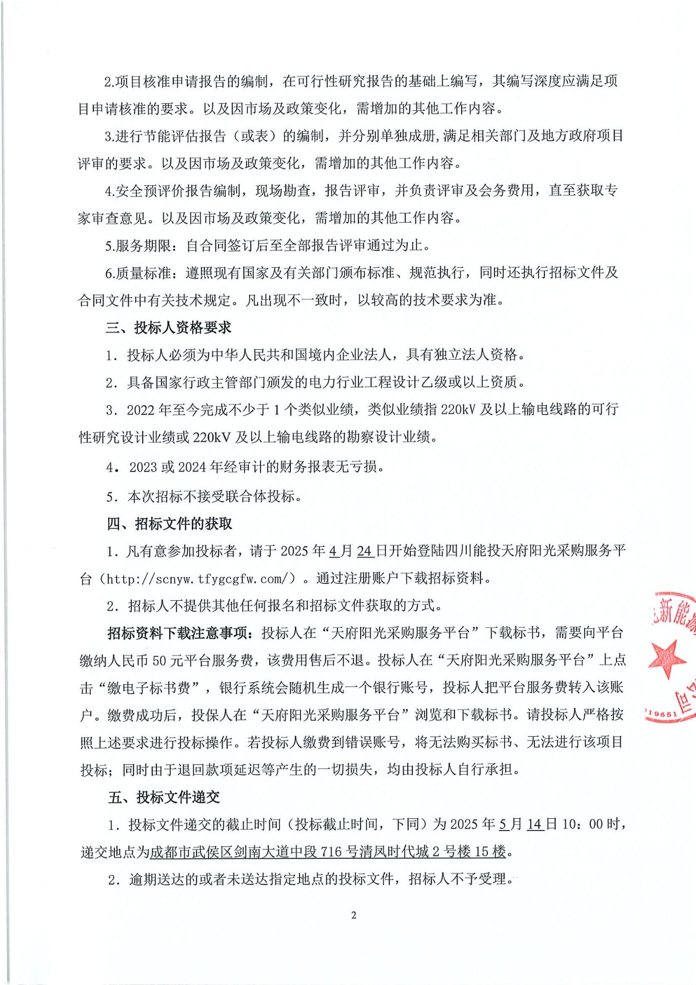 1.凡有意参加投标者,请于2025年4月24日开始登陆四川能投天府阳光采购服务平台(http://scnyw.tfygcgfw.com/)。通过注册账户下载招标资料。