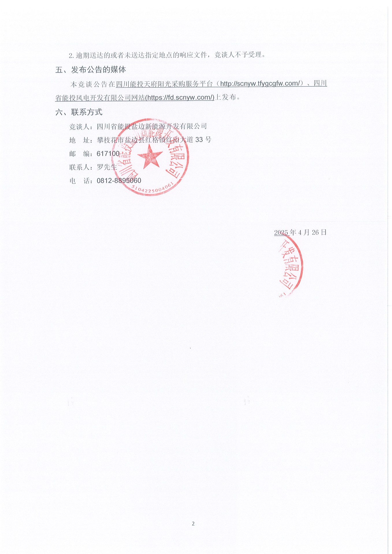 竞谈人:四川省能投盐边新能源开发有限公司