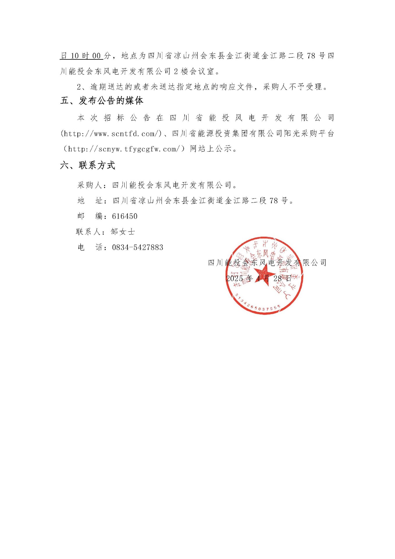 1、响应文件递交的截止时间(响应申请截止时间)为2025年5月12日10时00分,地点为四川省凉山州会东县金江街道金江路二段78号四川能投会东风电开发有限公司2楼会议室。