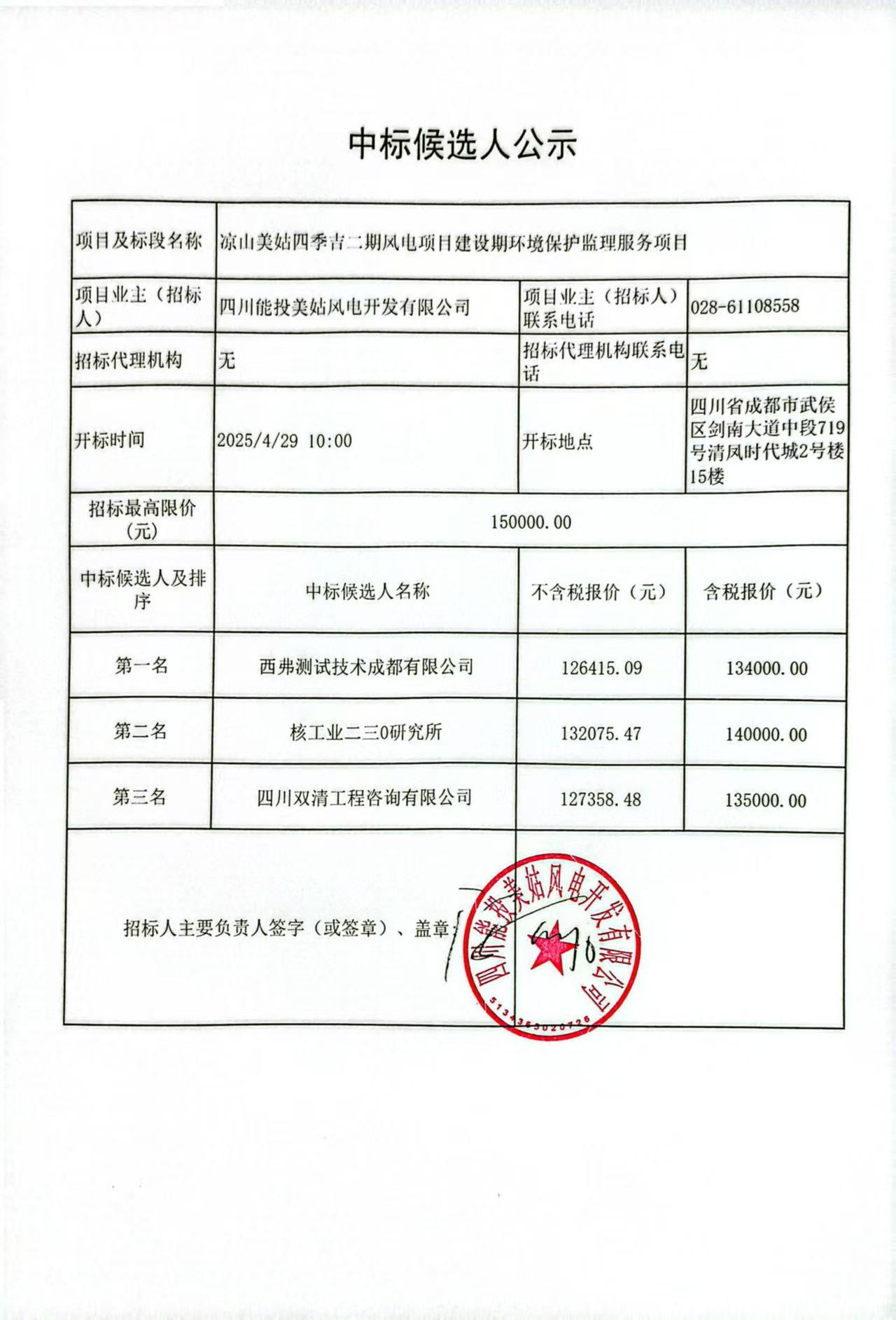 下一条:四川能投美姑风电开发有限公司关于凉山美姑沙马乃托二期风电项目环境监测及生态调查服务项目的中标候选人公示