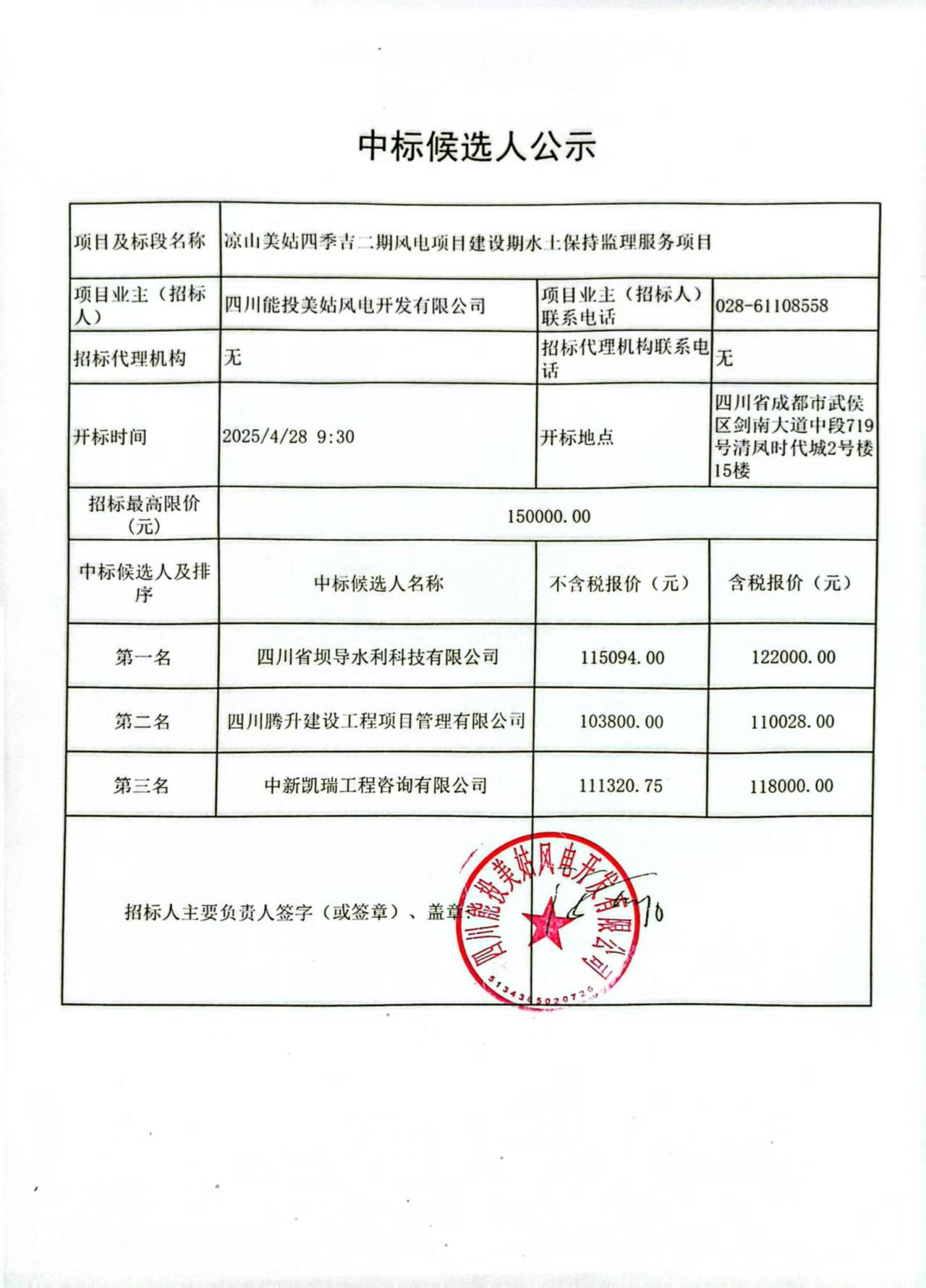 上一条:四川能投美姑风电开发有限公司关于凉山美姑沙马乃托二期风电项目建设期水上保持监测服务项目的中标候选人公示