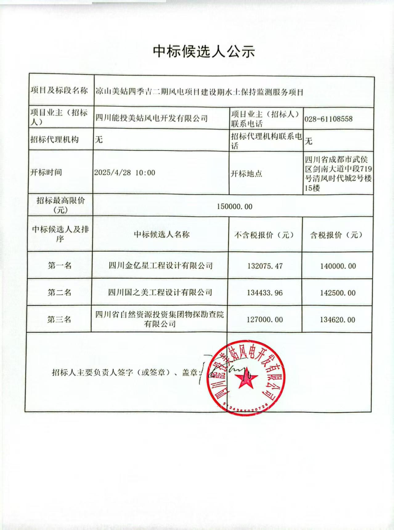 下一条:四川能投美姑风电开发有限公司关于凉山美姑沙马乃托二期风电项目建设期水上保持监测服务项目的中标候选人公示