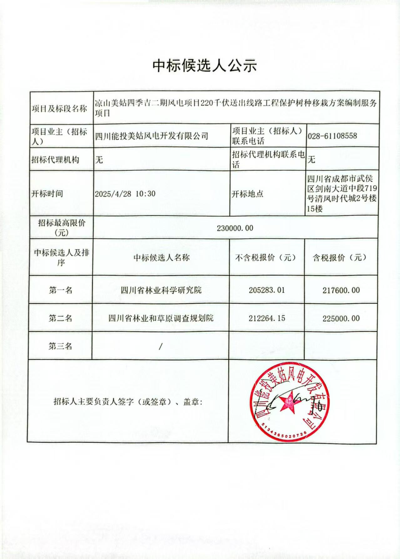 下一条:四川能投美姑风电开发有限公司关于凉山美姑四季吉二期风电项目建设期水土保持监测服务项目的中标候选人公示