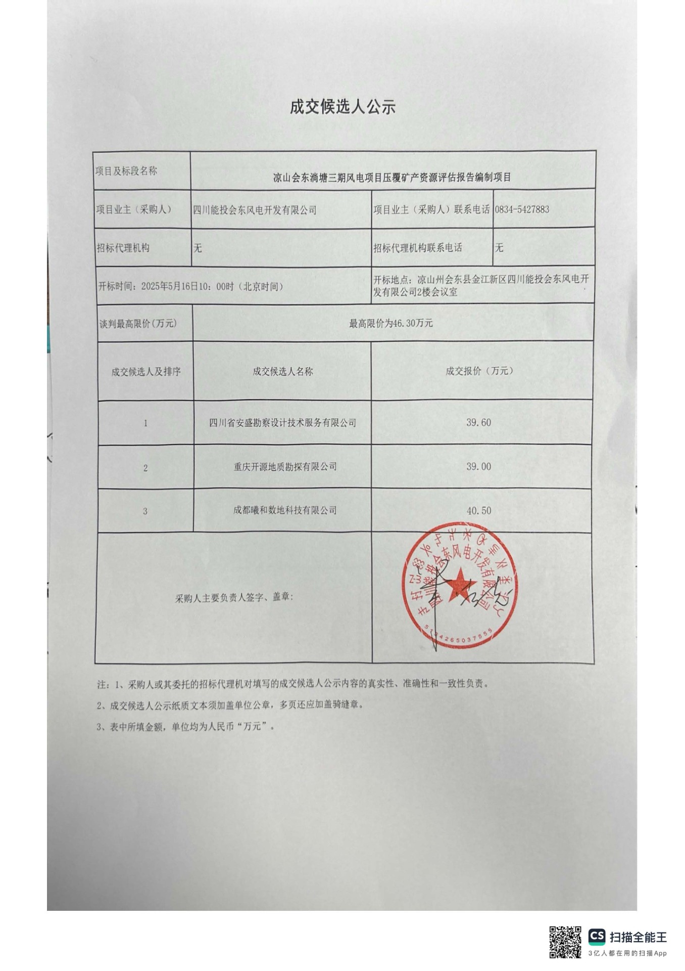 上一条:四川省能投美姑新能源开发有限公司关于井叶特西风电场、沙马乃托一期风电场、拉咪北风电场输电线路2025年度运行维护服务项目的中标候选人公示