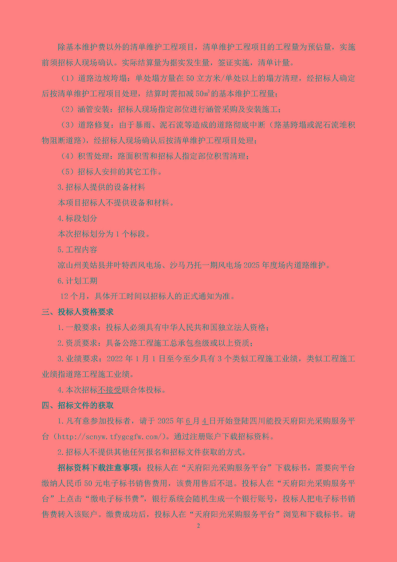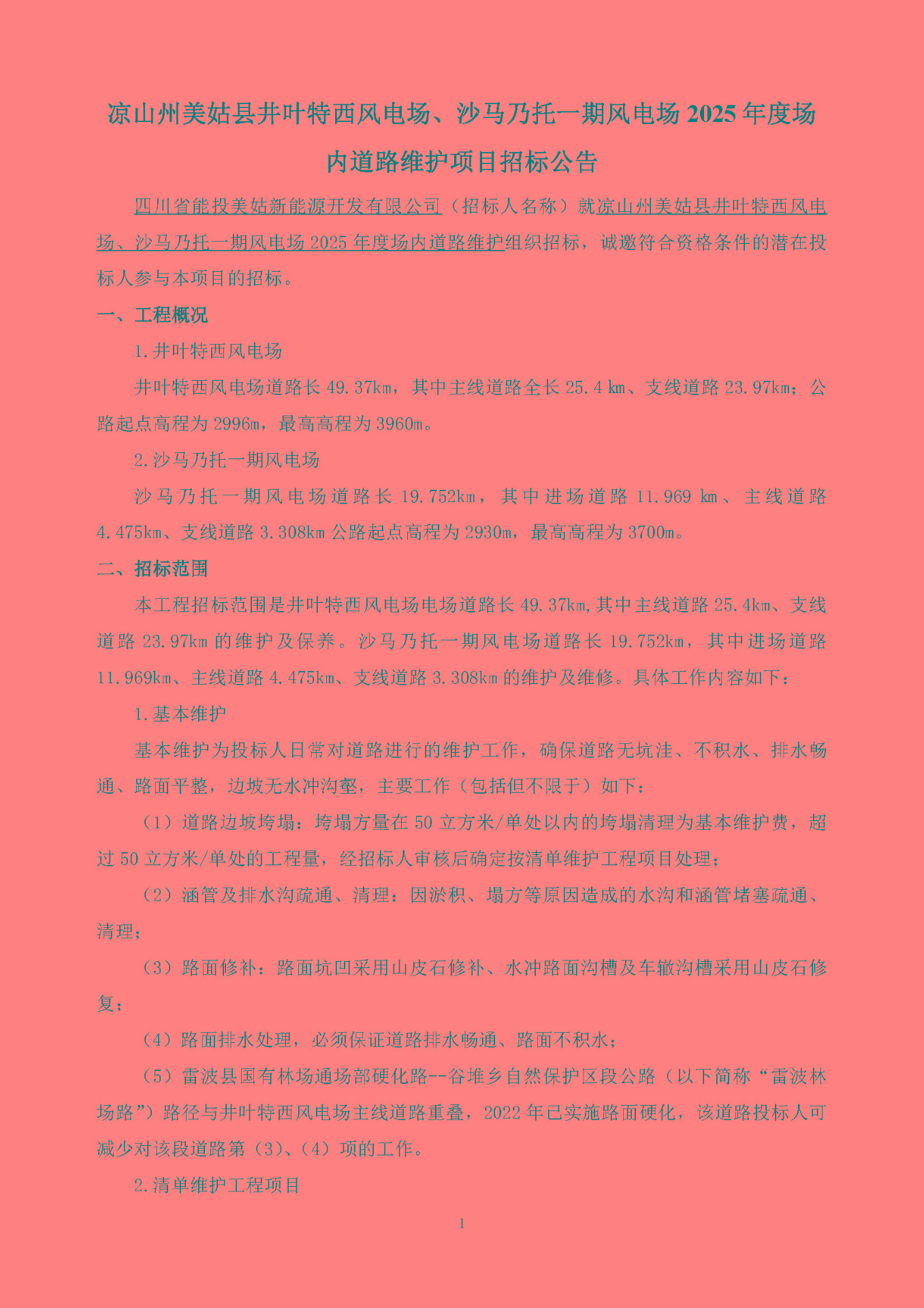 四川省能投美姑新能源开发有限公司(招标人名称)就凉山州美姑县井叶特西风电场、沙马乃托一期风电场2025年度场内道路维护组织招标,诚邀符合资格条件的潜在投标人参与本项目的招标。