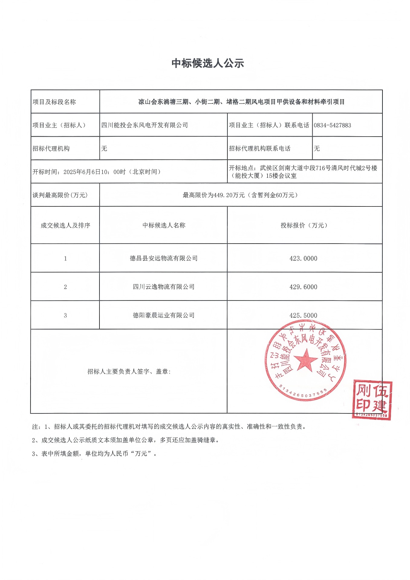 下一条:四川省能投会东新能源开发有限公司关于投运风电场风功率预测系统技术服务及鲁南升压站风功率预测服务器系统更换项目的流标公示