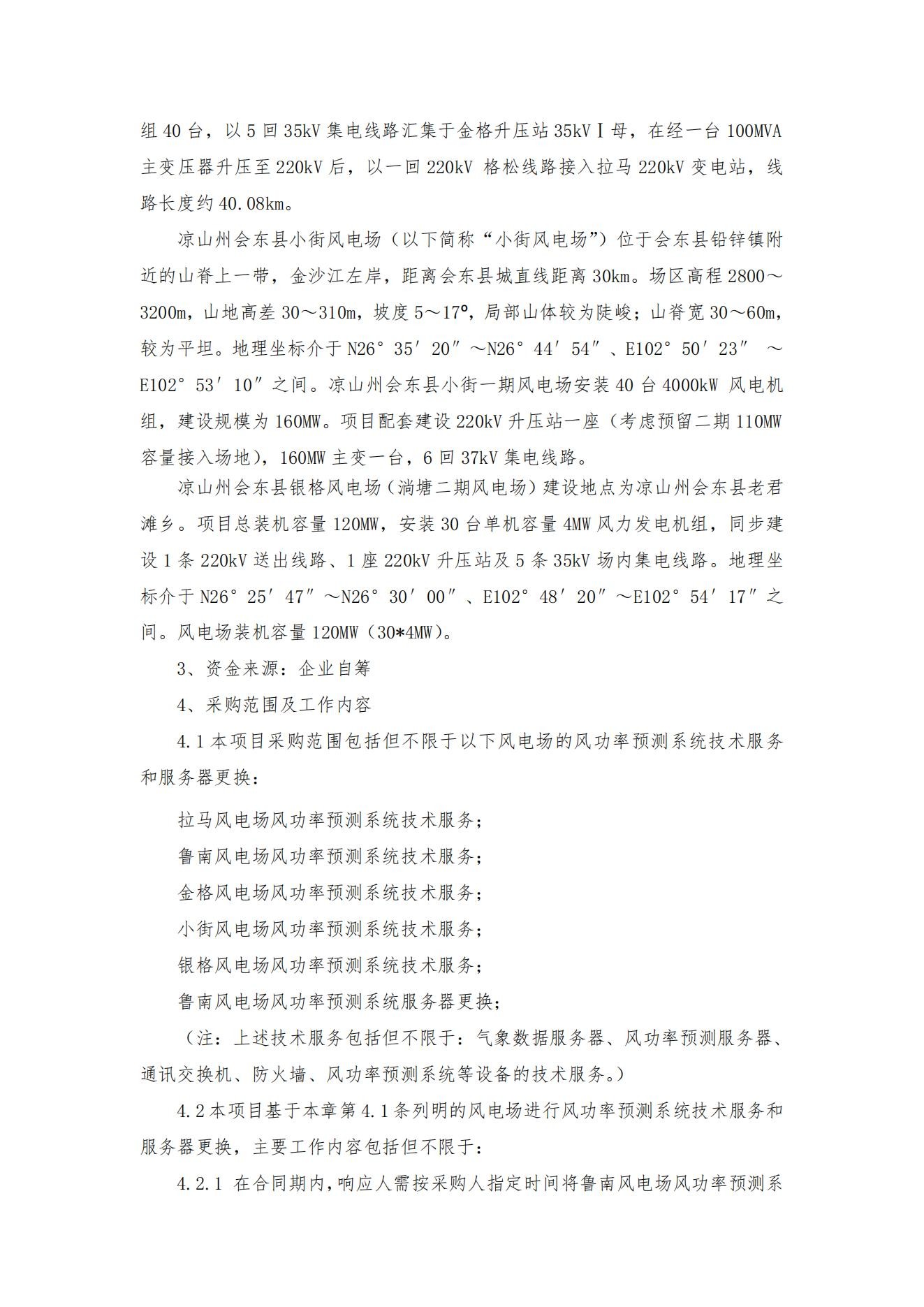 1、项目名称:投运风电场风功率预测系统技术服务及鲁南升压站风功率预测服务器系统更换项目(第二次)。