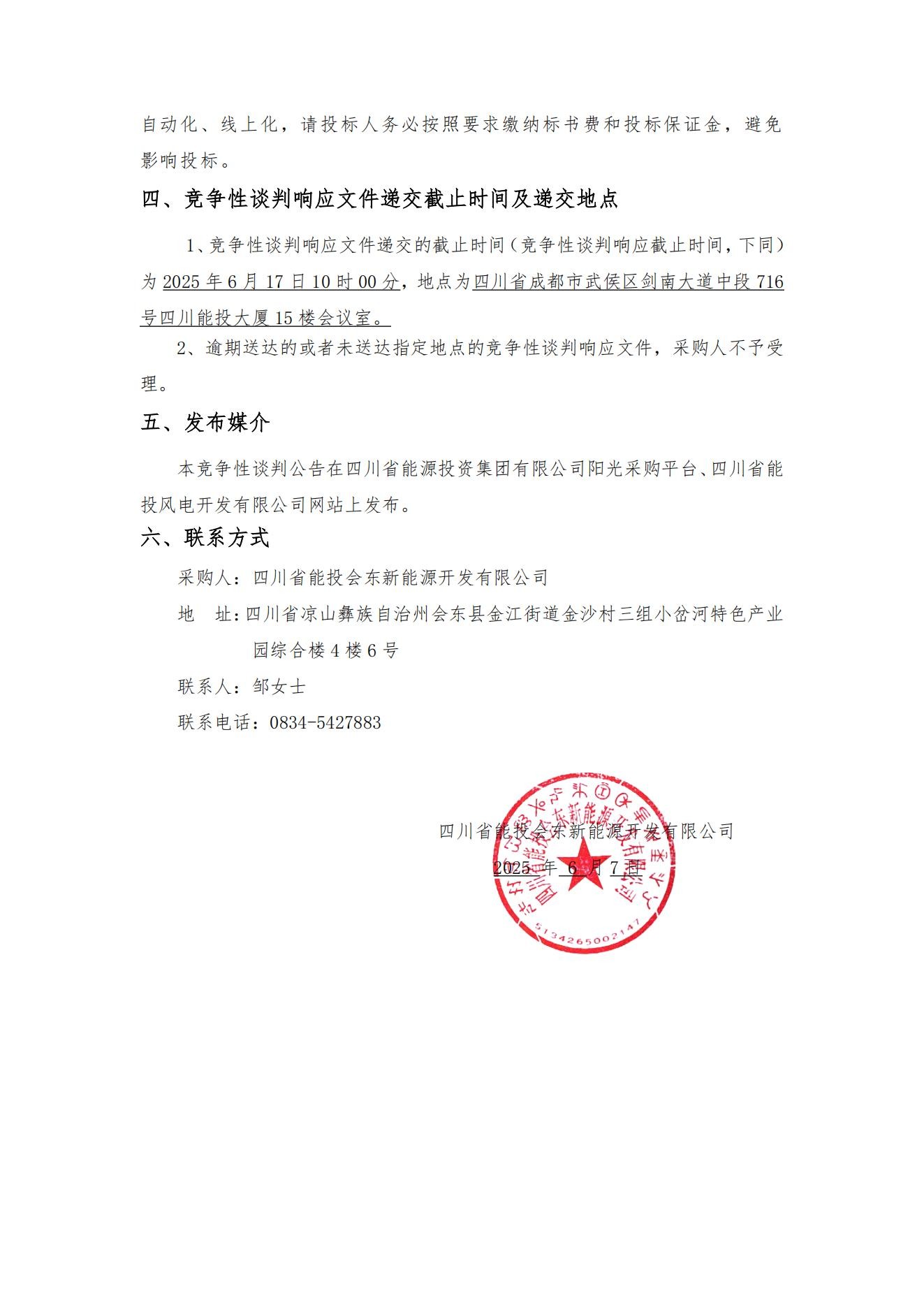 请符合要求且有意参加本项目竞争的潜在供应商于2025年6月17日10时00分之前在四川省能源投资集团有限公司阳光采购平台(http://scnyw.tfygcgfw.com/)下载竞争性谈判文件。
