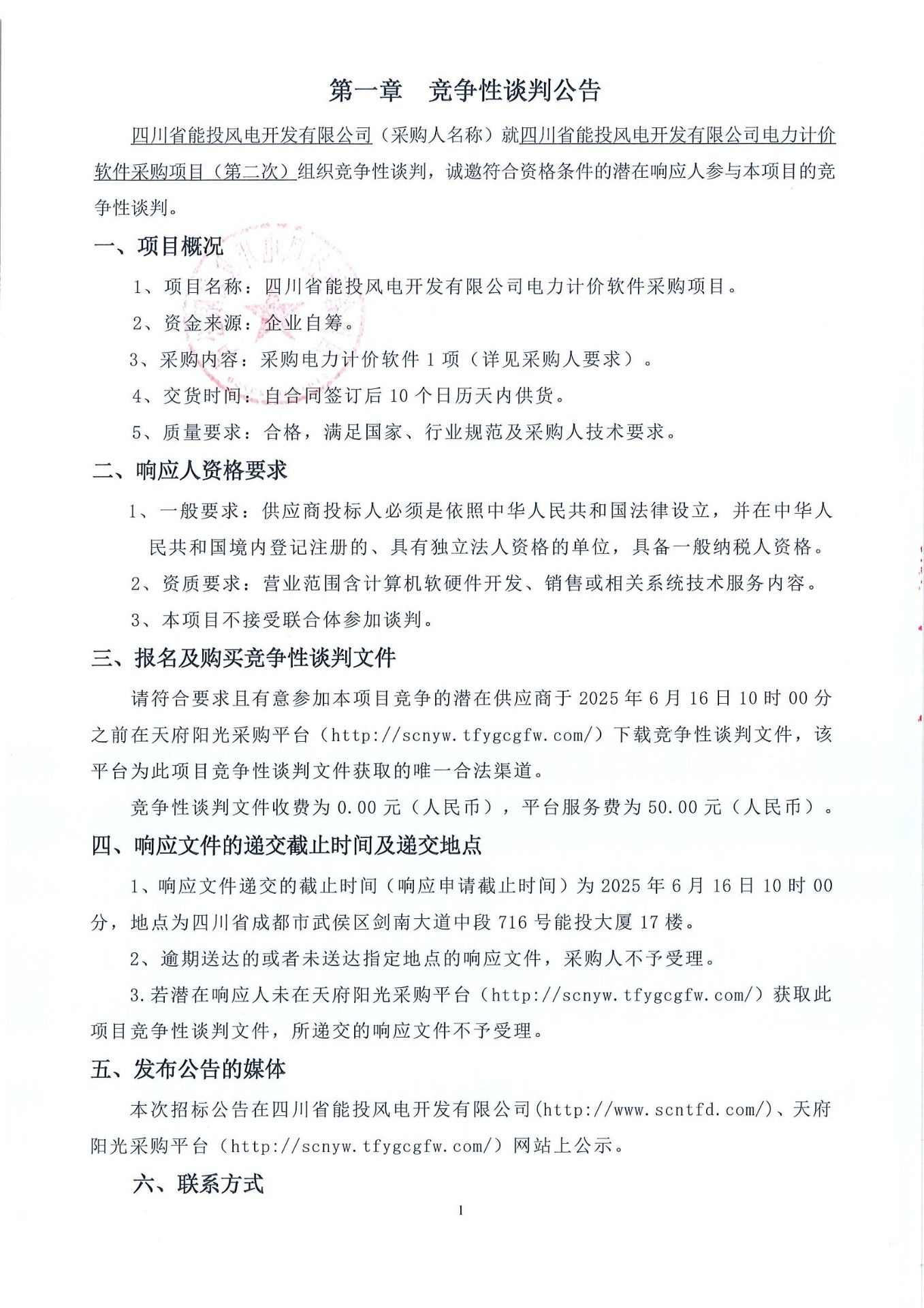 3、采购内容:采购电力计价软件1项(详见采购人要求)。