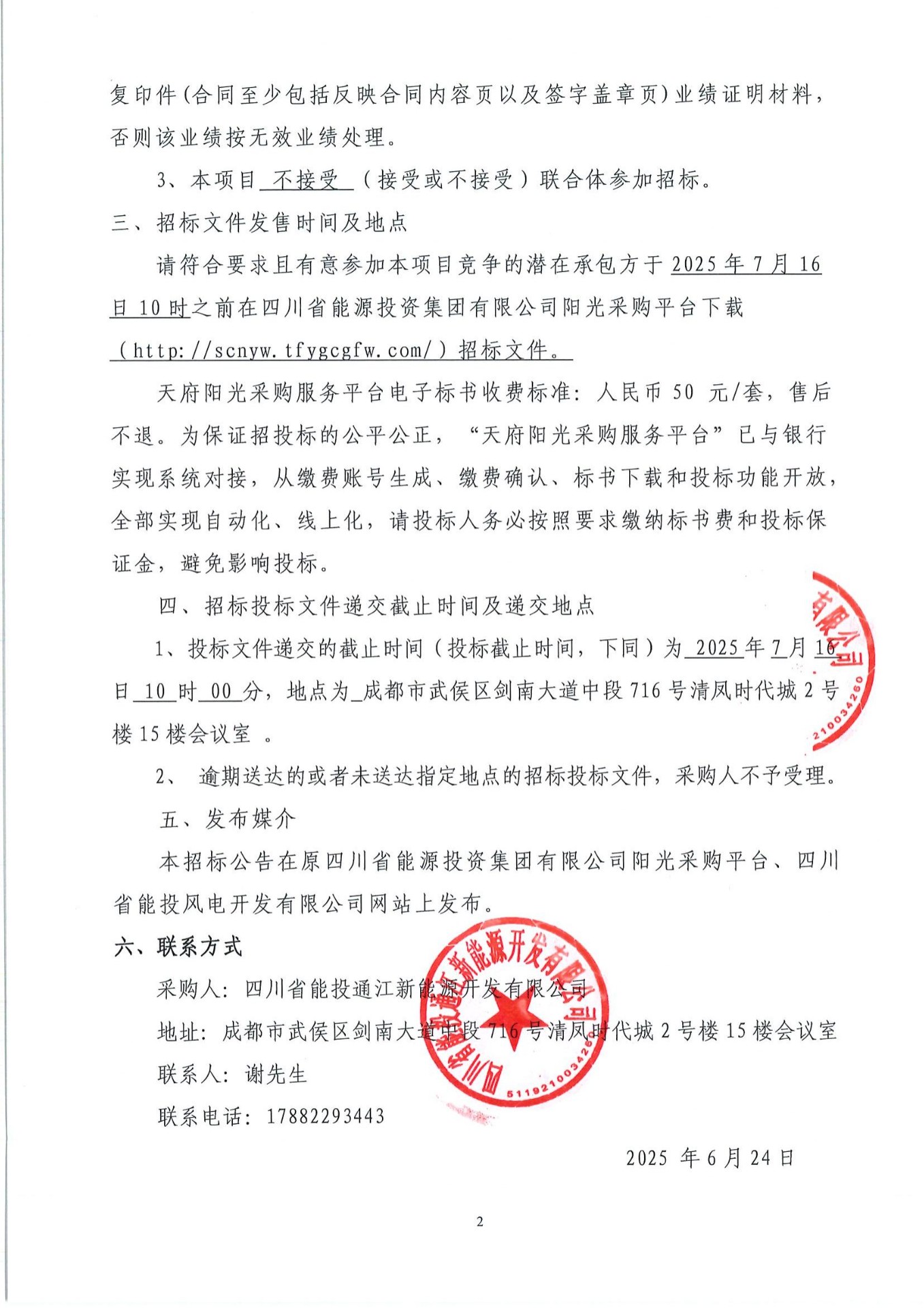 请符合要求且有意参加本项目竞争的潜在承包方于2025年7月16日10时之前在四川省能源投资集团有限公司阳光采购平台下载(http://scnyw.tfygcgfw.com/)招标文件。