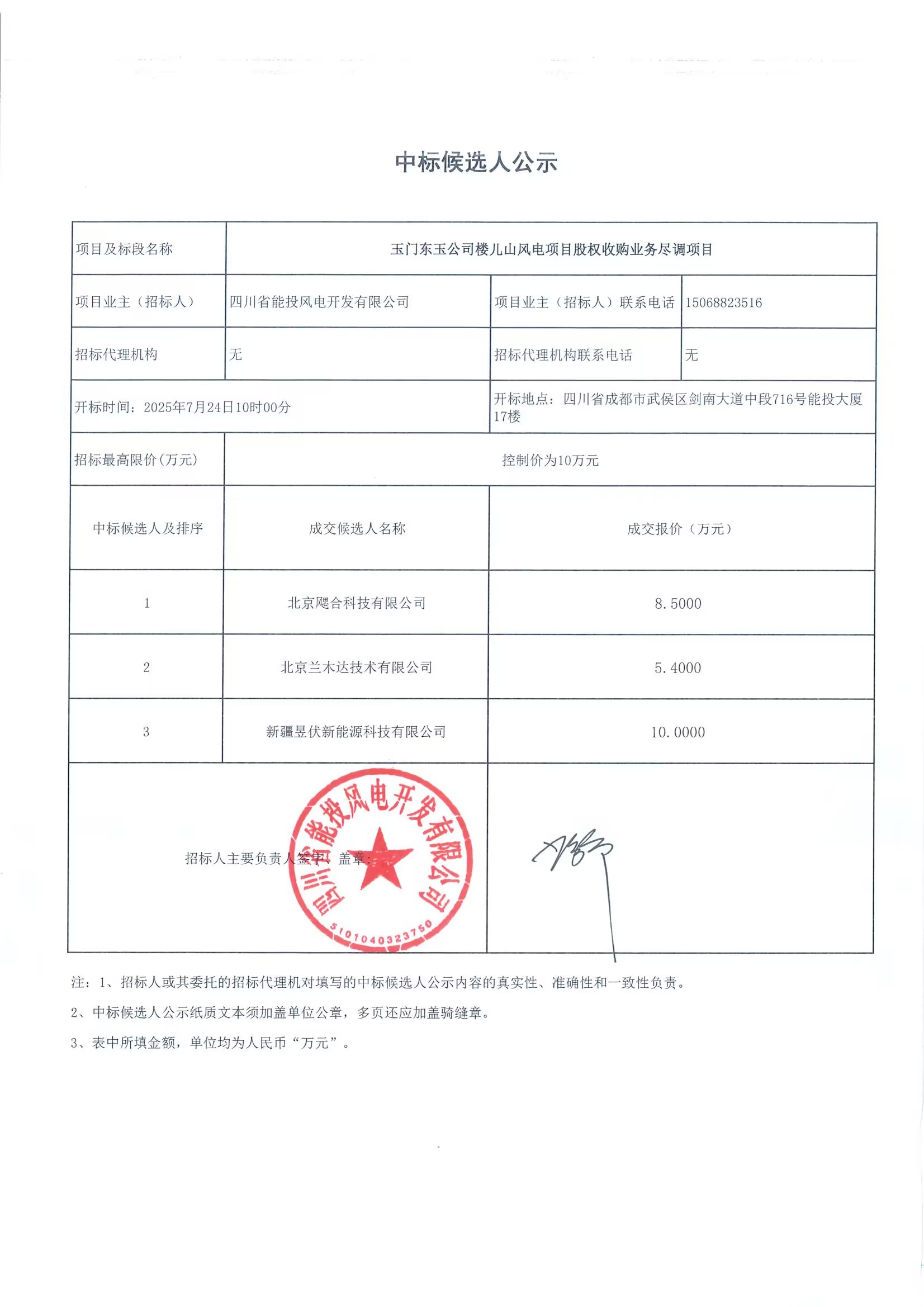 上一条:四川能投美姑风电开发有限公司关于凉山美姑四季吉二期风电项目和沙马乃托二期风电项目不动产权证办理服务项目的中标候选人公示