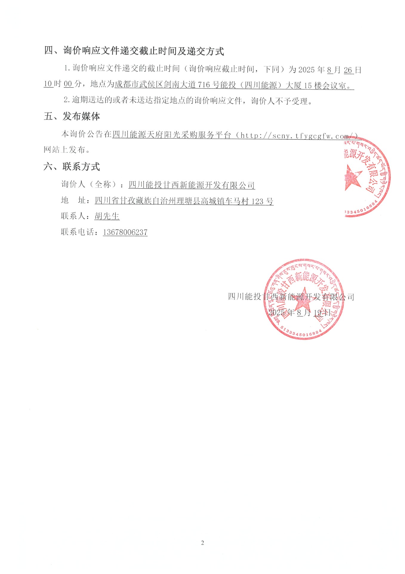 1.询价响应文件递交的截止时间(询价响应截止时间,下同)为2025年8月26日10时00分,地点为成都市武侯区剑南大道716号能投(四川能源)大厦15楼会议室。