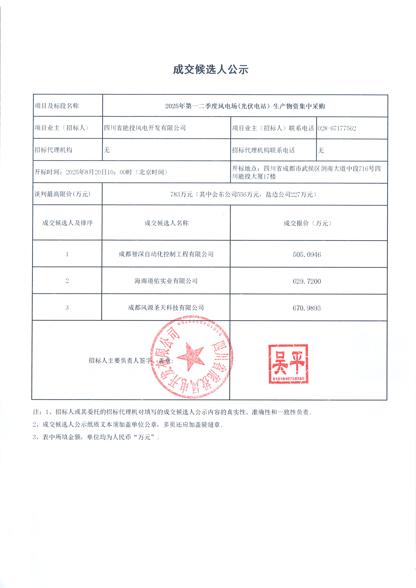 上一条:四川省能投会东新能源开发有限公司关于出质保风电场机组叶片专项检测及隐患排查项目的流标公示