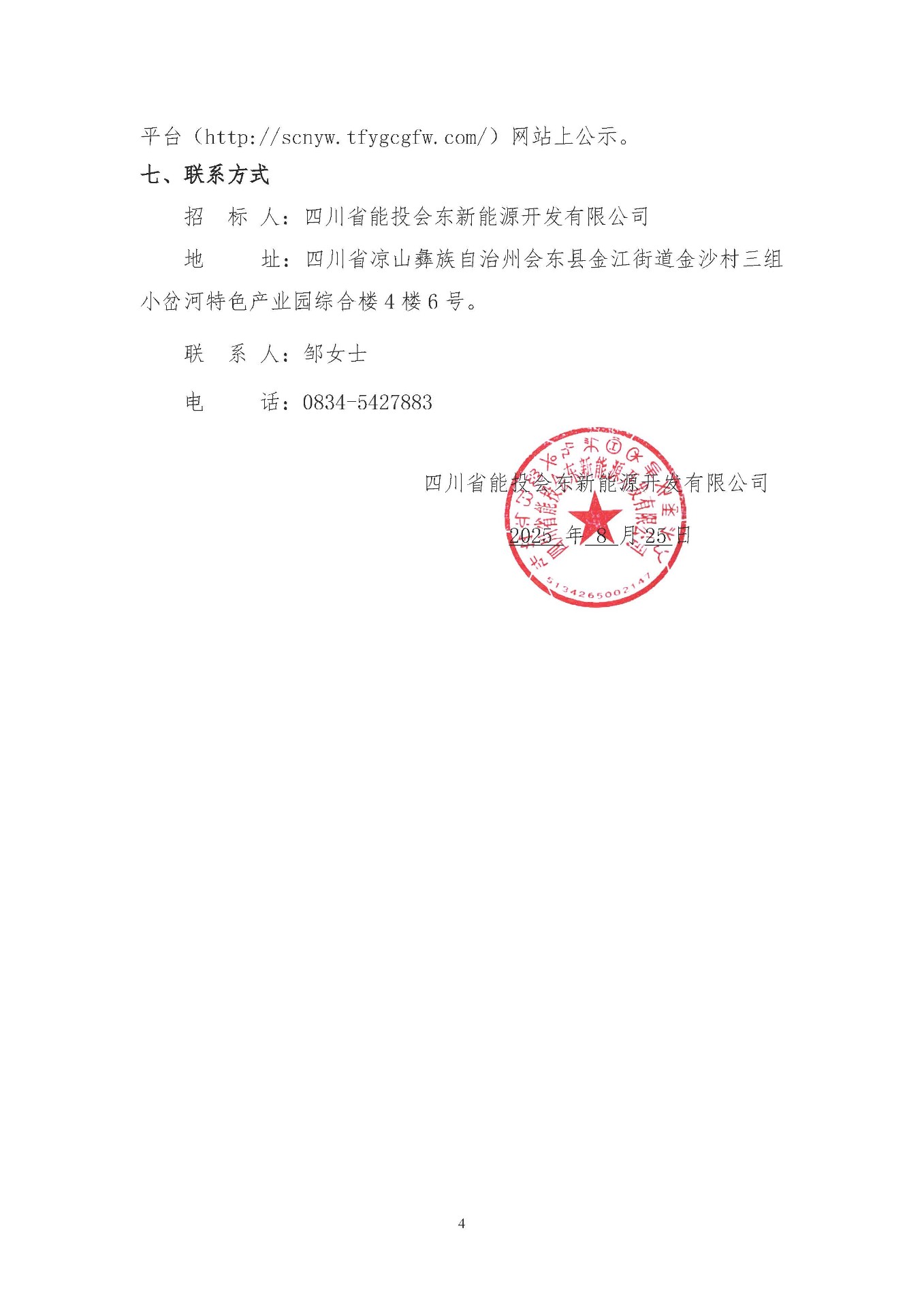 (2)投标书递送地点:凉山州会东县金江新区四川省能投会东新能源开发有限公司2楼开标室,在投标截止时间以后送达的投标书将被拒收。