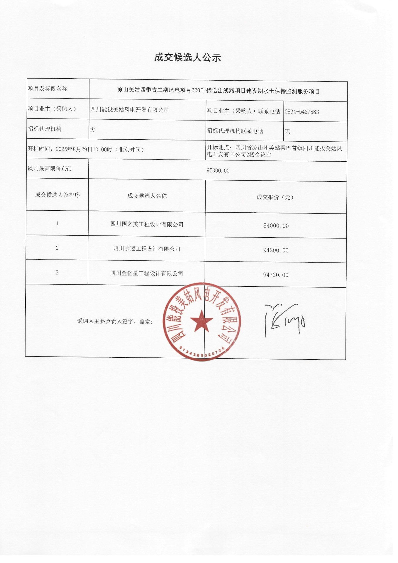 下一条:四川能投美姑风电开发有限公司关于凉山美姑四季吉二期风电项目220千伏送出线路项目安全设施设计专篇服务项目的成交候选人公示