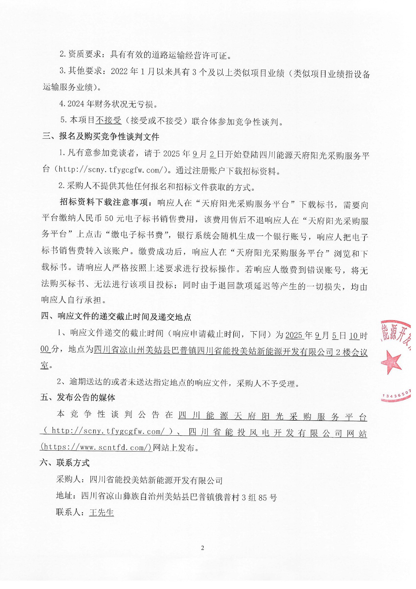 1.凡有意参加竞谈者,请于2025年9月2日开始登陆四川能源天府阳光采购服务平台(http://scny.tfygcgfw.com/)。通过注册账户下载招标资料。