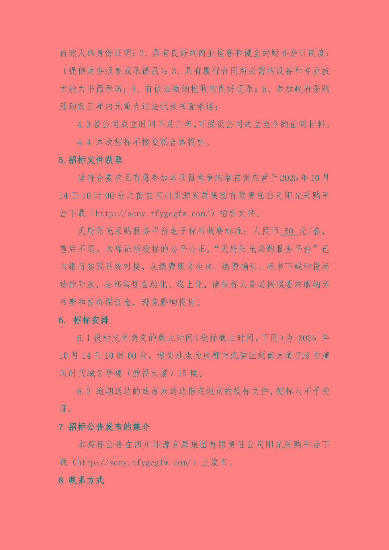 6.1投标文件递交的截止时间(投标截止时间,下同)为 2025 年10月14日10时00分,递交地点为成都市武侯区剑南大道716号清凤时代城2号楼(能投大厦)15楼。