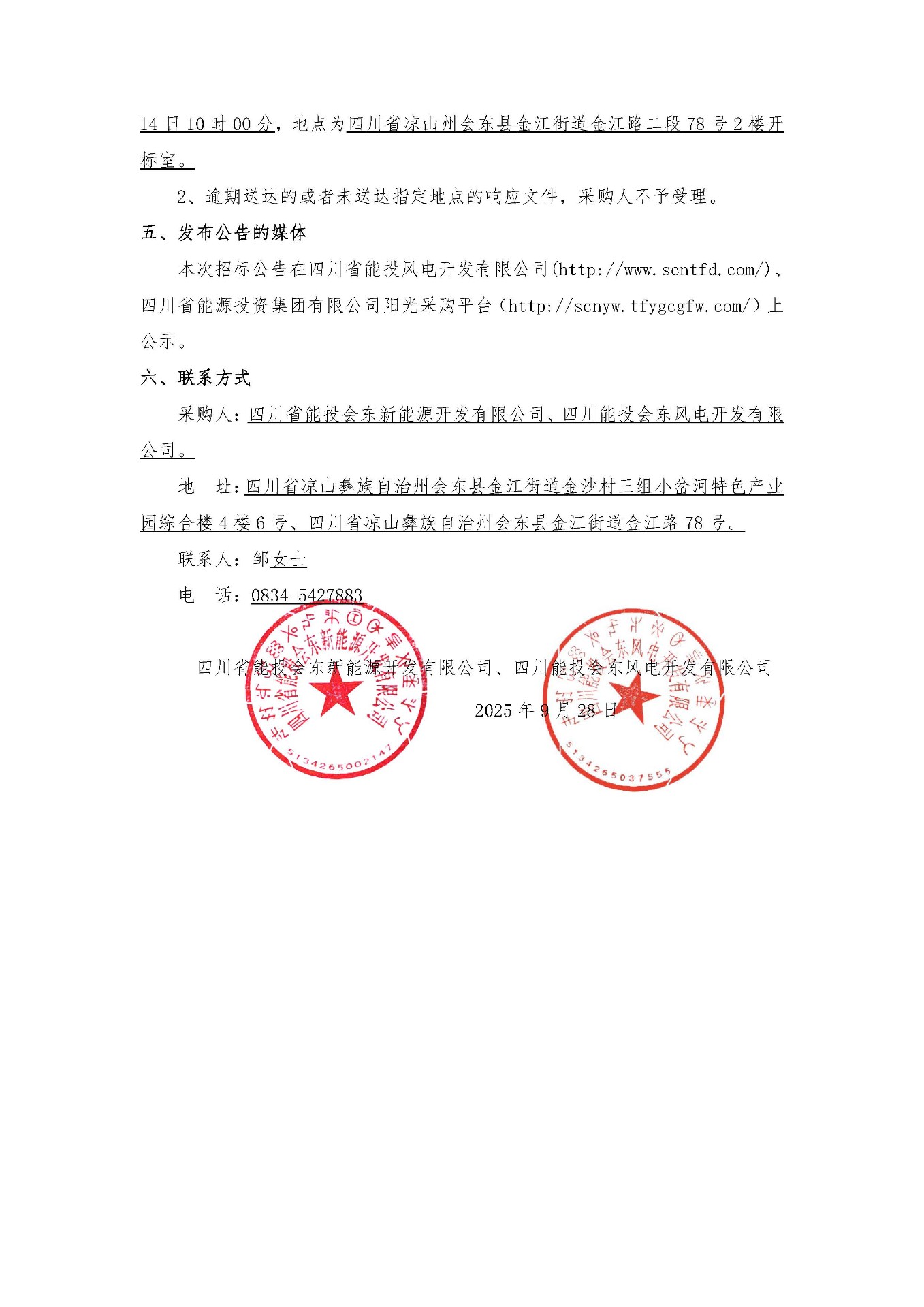 四川省能投会东新能源开发有限公司、四川能投会东风电开发有限公司