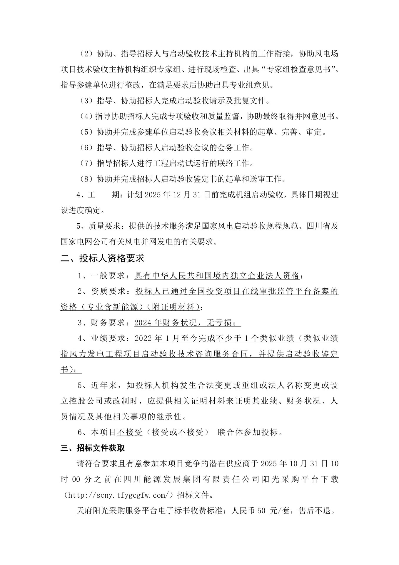 5、质量要求:提供的技术服务满足国家风电启动验收规程规范、四川省及国家电网公司有关风电并网发电的有关要求。