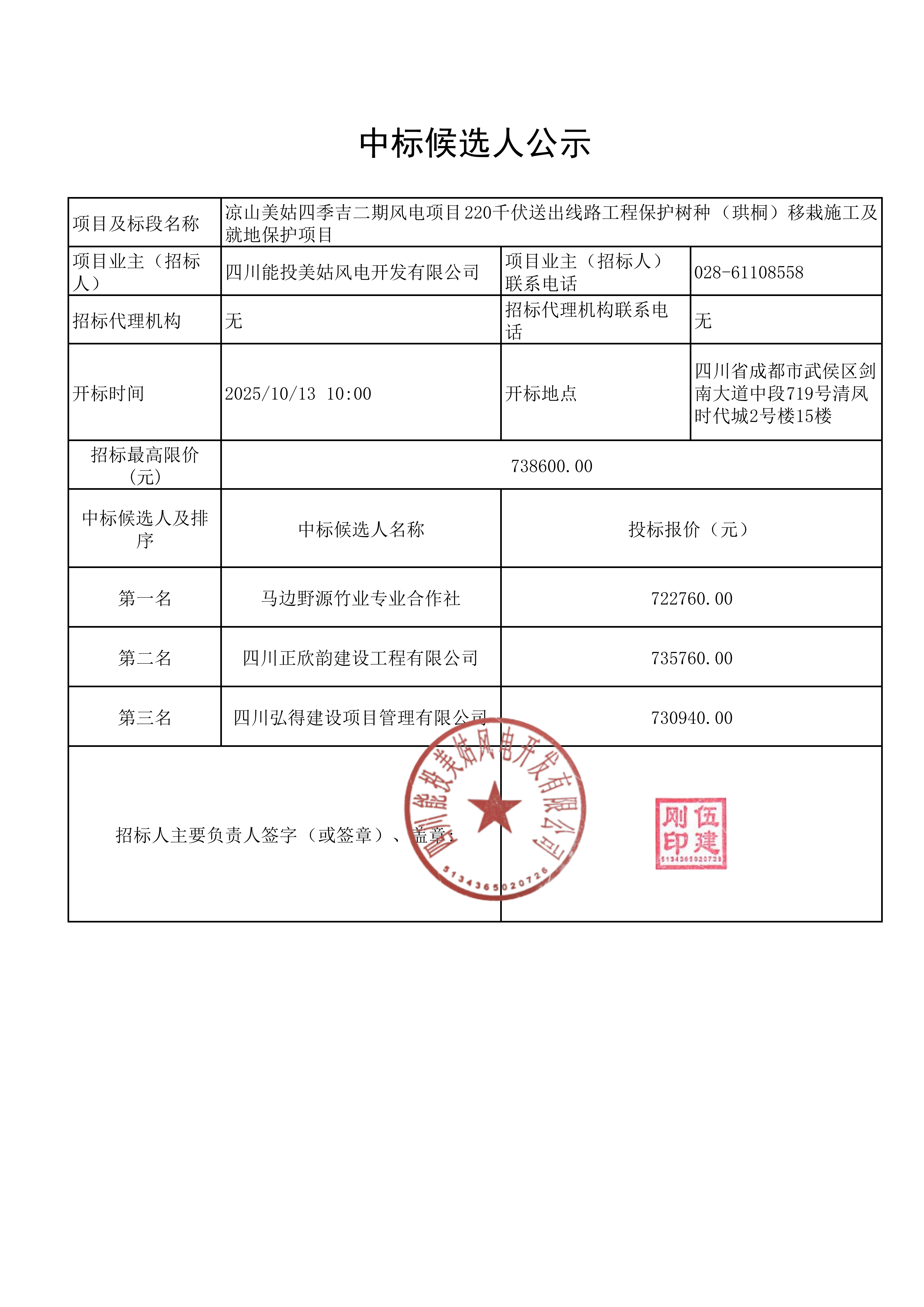 下一条:四川能投美姑风电开发有限公司关于乐西高速中铁十八局施工便道改扩建施工项目的中标候选人公示
